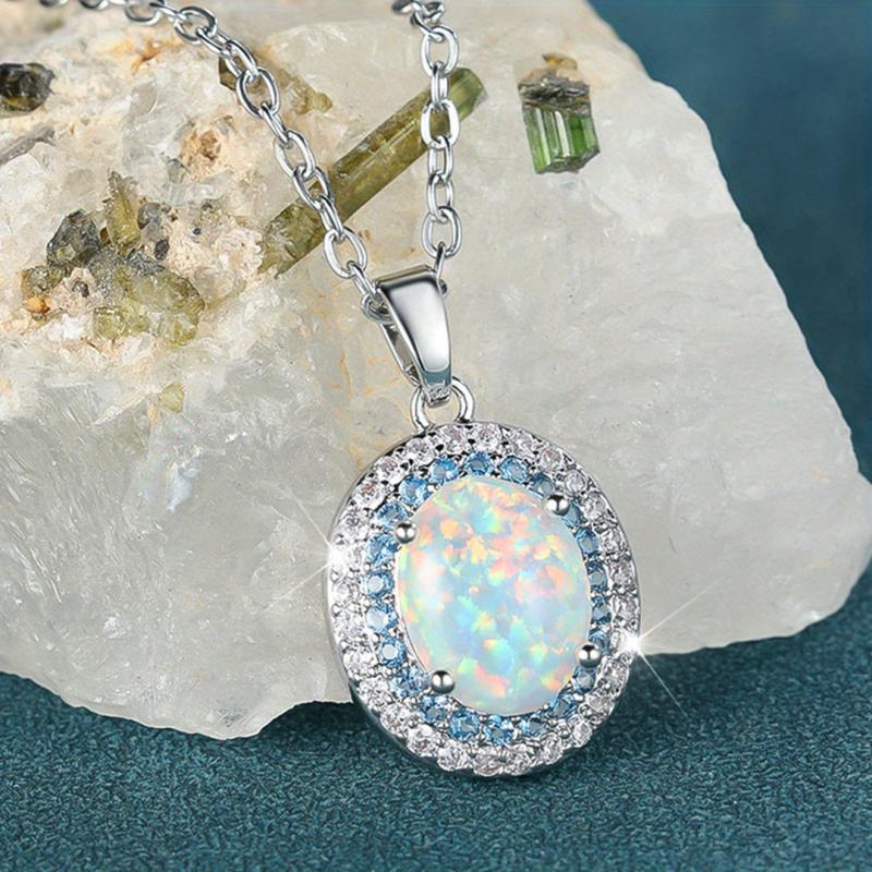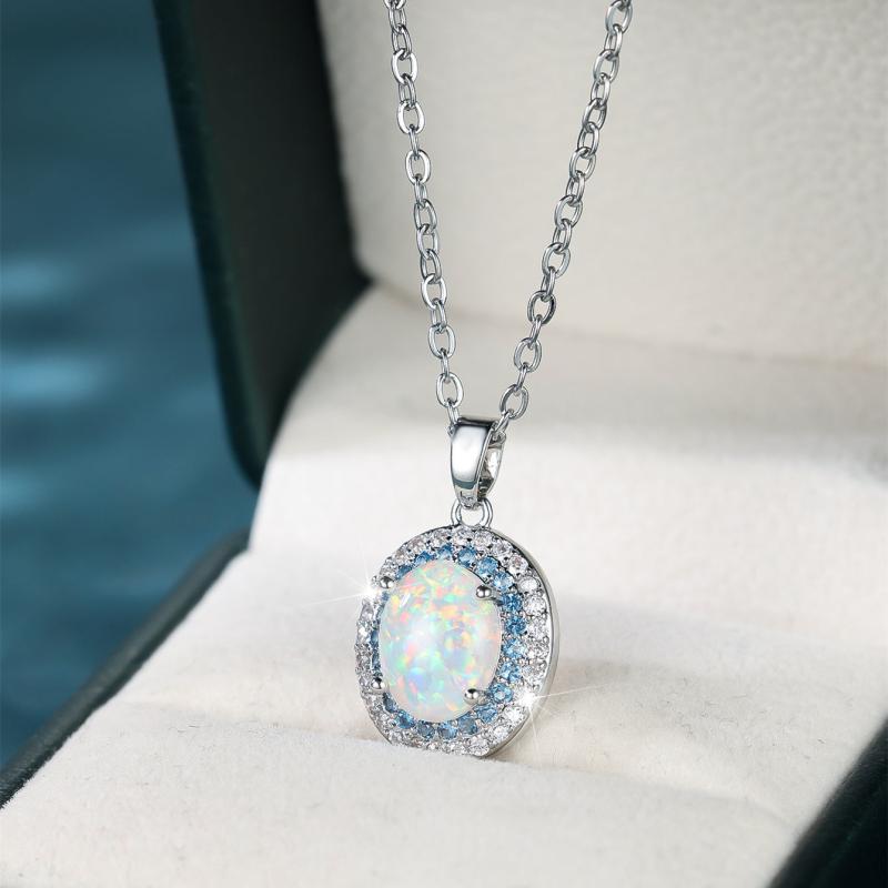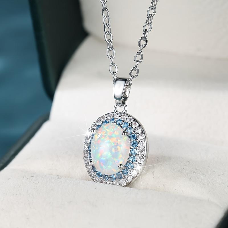 Add a touch of elegance with this unique egg-shaped aquamarine pendant necklace. This high-end clavicle chain is a blingbling gift for her.