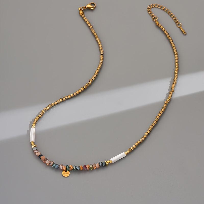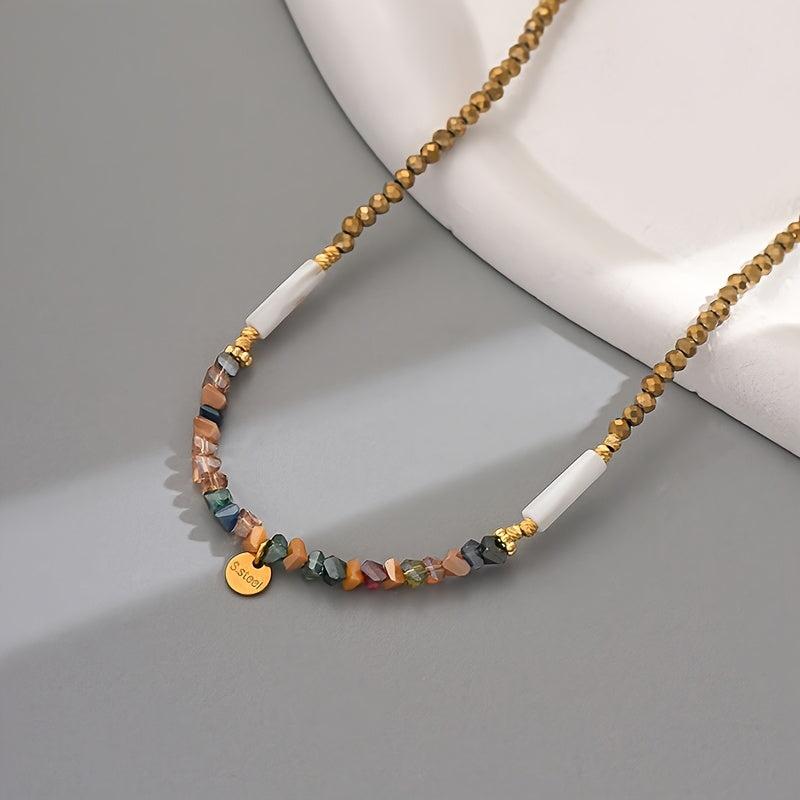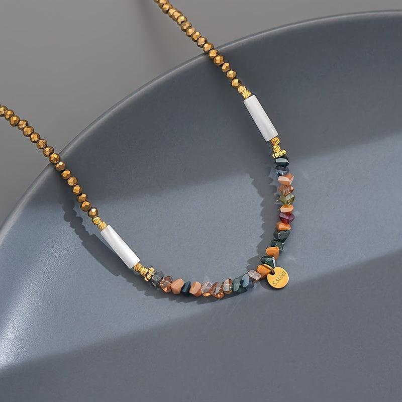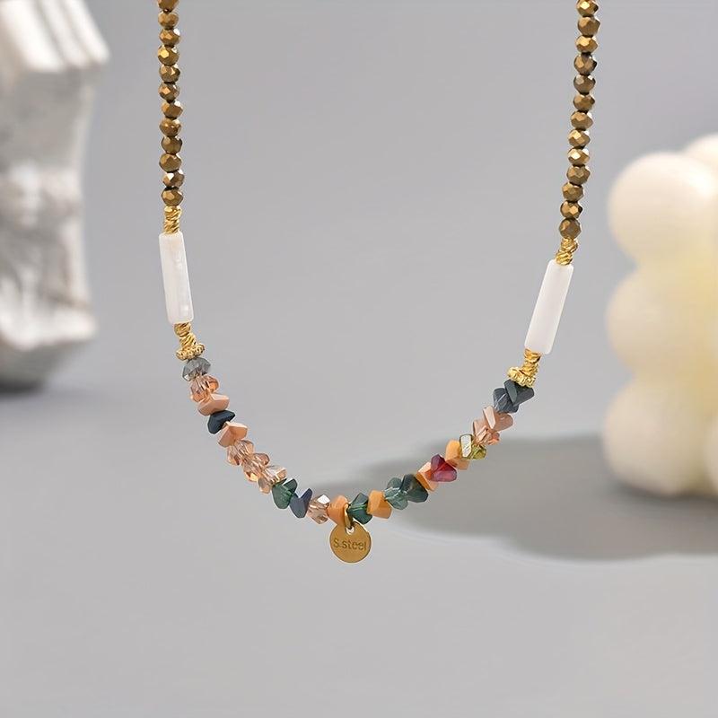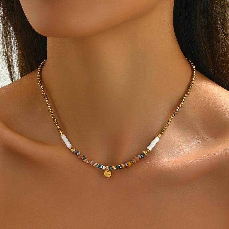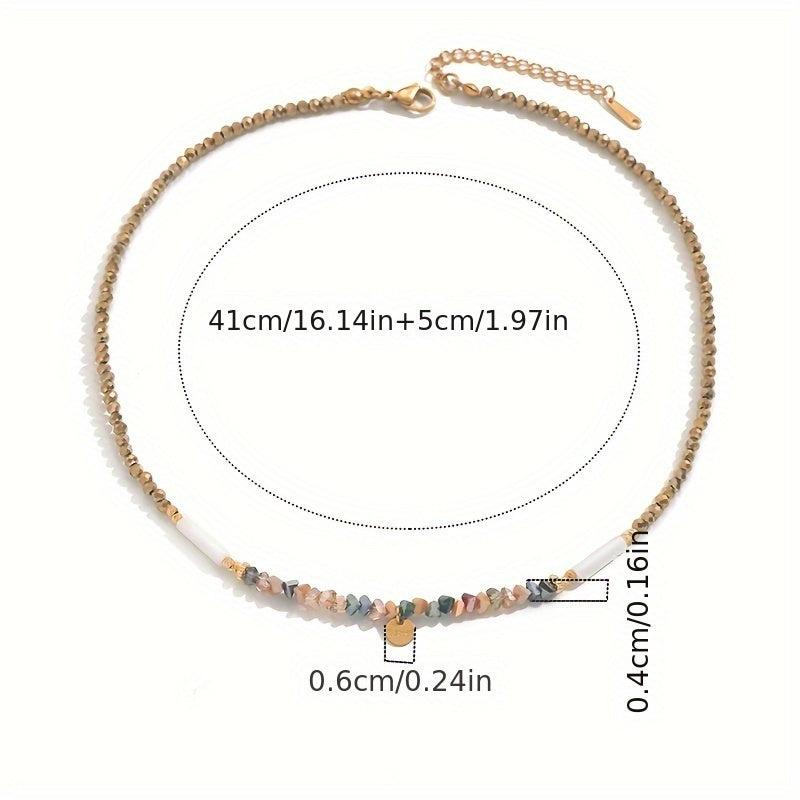 Elevate your style with this bohemian beaded necklace featuring artificial crystals. Perfect for daily wear or party occasions, this all-season accessory offers a touch of elegance. Random bead colors add a fun, unique element to your look.