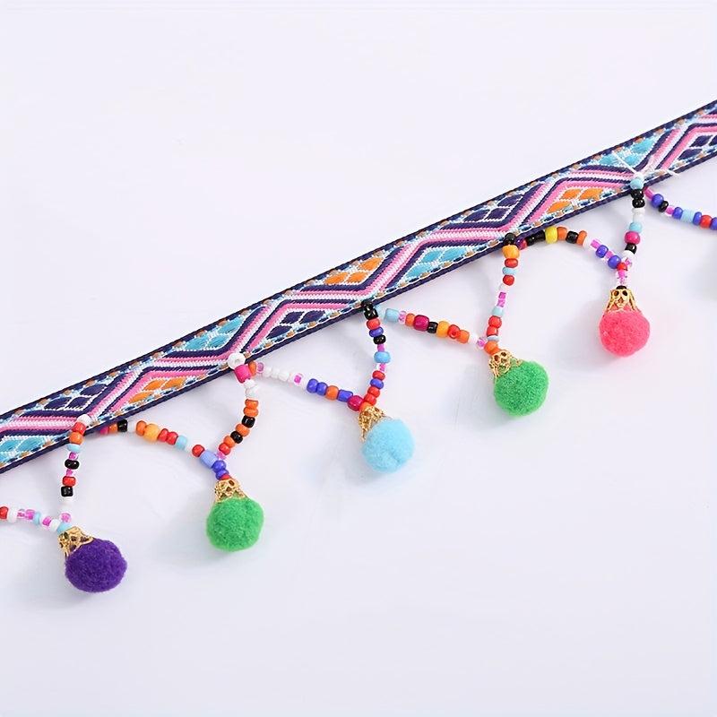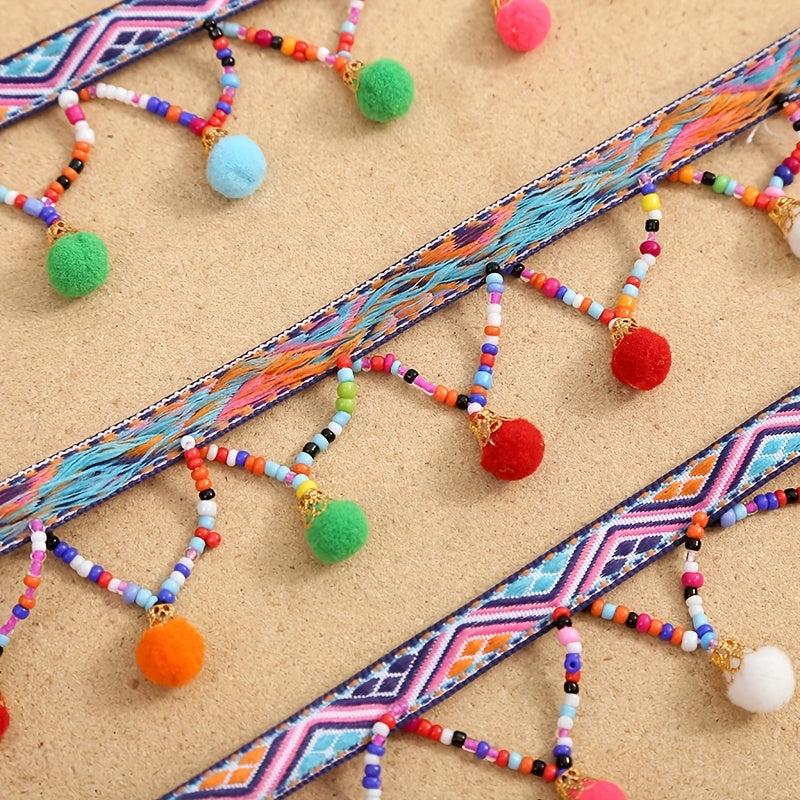 Add a touch of Bohemian style to your DIY projects with this colorful polyester lace trim. Perfect for making jewelry, bracelets, necklaces, headpieces, and waist chains.