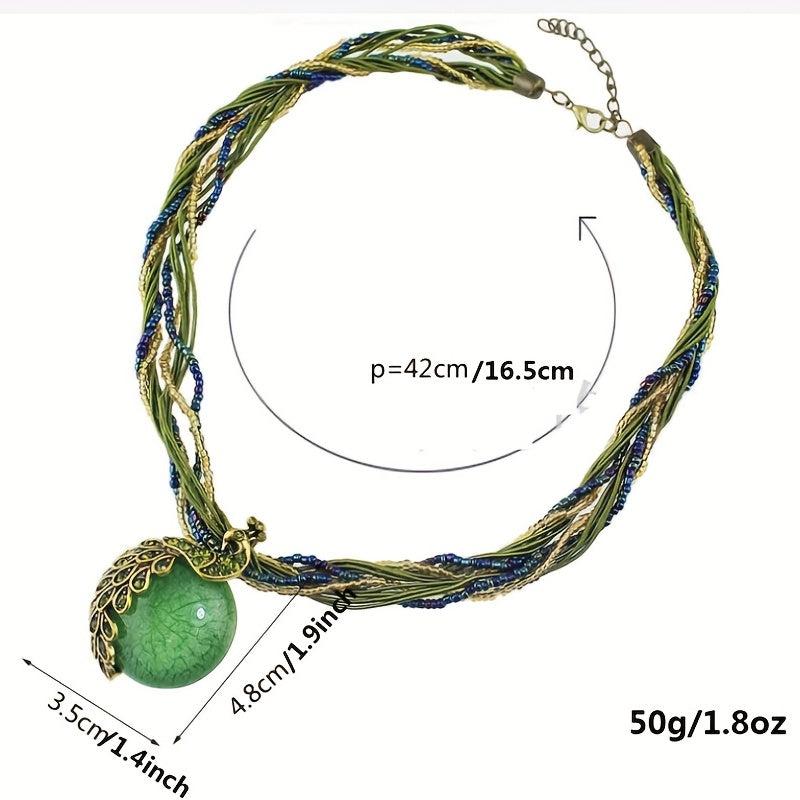 Add a touch of bohemian vibe with this retro style necklace featuring a leaf and peacock gemstone pendant. Perfect for women and girls who love ethnic-inspired jewelry.