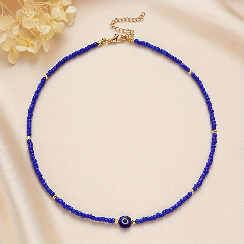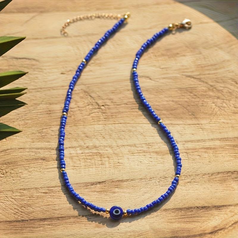 This bohemian evil eye beaded necklace is perfect for daily wear or parties. The stylish and golden tribal inspired zinc alloy pendant with beads adds a unique touch to your outfit.