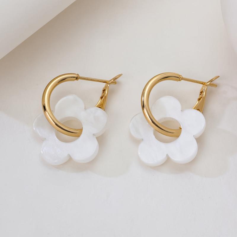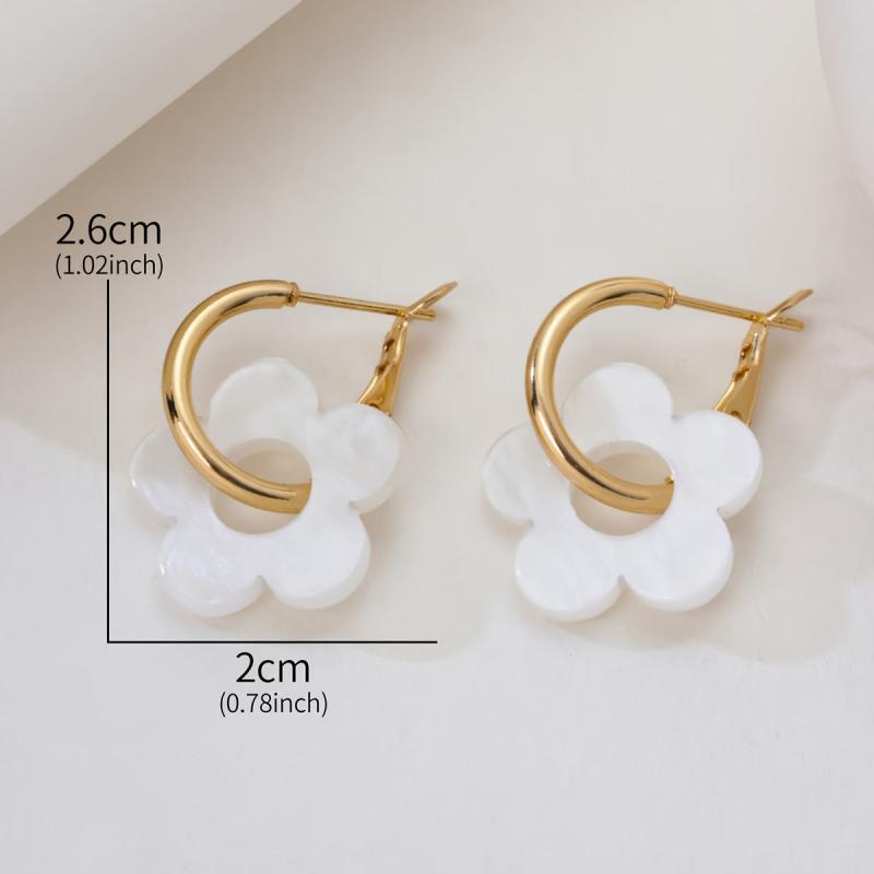 Bohemian Floral Acrylic Dangle Earrings for Women Five Petal Golden Tone Hooks