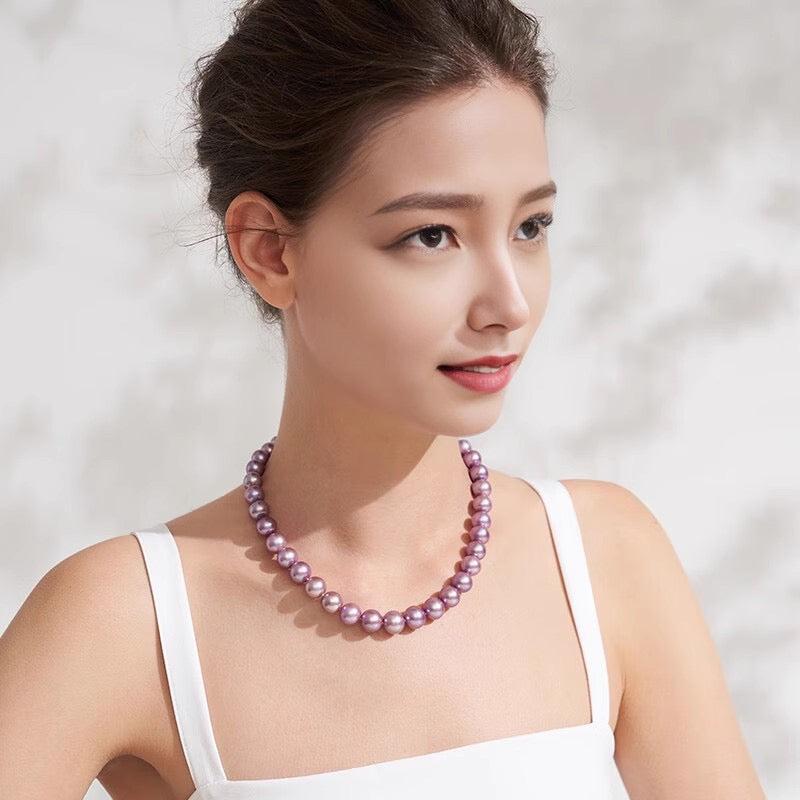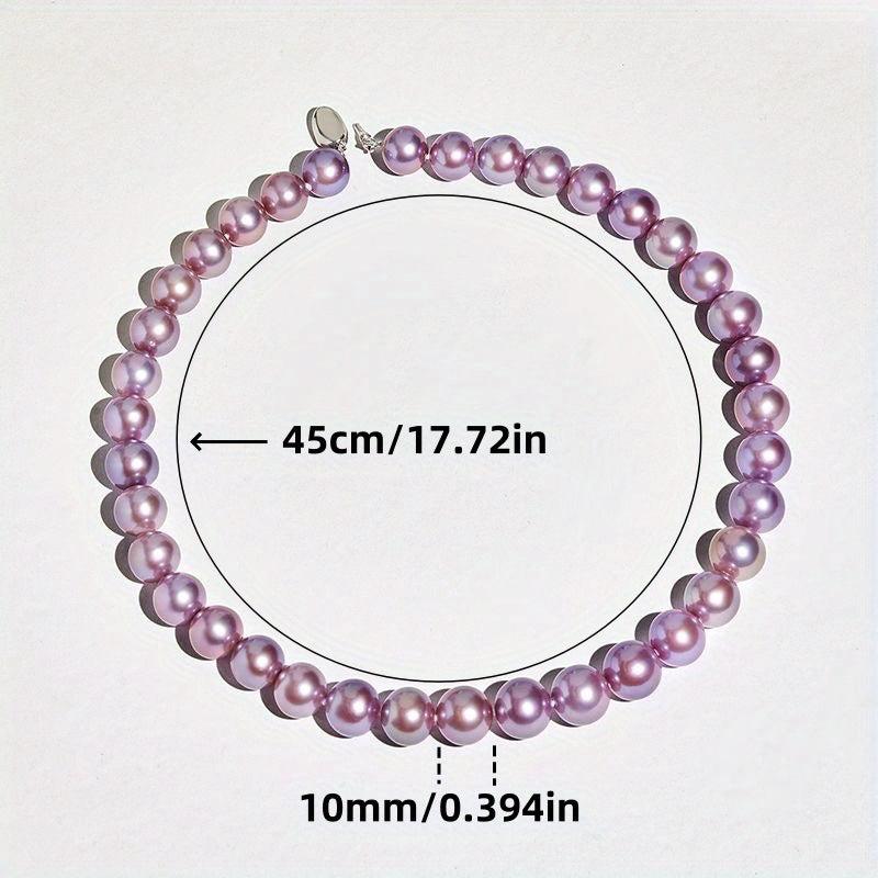 This minimalist Bohemian necklace features unique natural variations in 10mm purple pinkish lavender freshwater pearls. A perfect gift for mothers or a stylish accessory for parties and everyday wear.