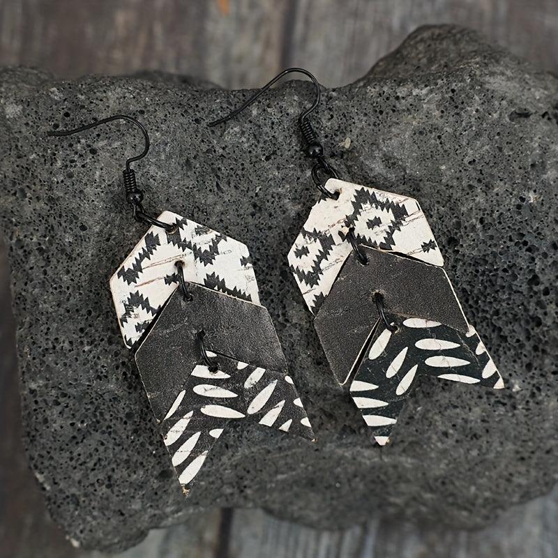 Enhance your daily look with these vintage-inspired geometric drop earrings. Featuring softwood crack PU leather accents and iron ear hooks, these earrings are hypoallergenic and suitable for sensitive skin.