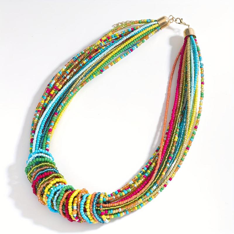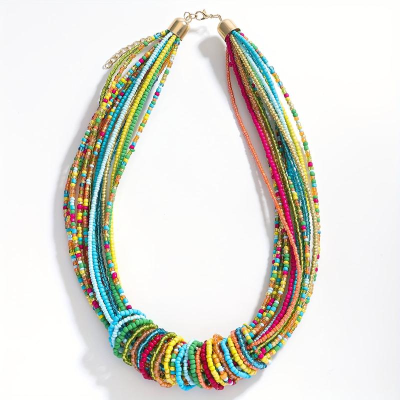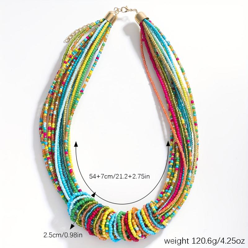 Elevate your style with this vibrant Bohemian Layer Beaded Necklace. The colorful beads in vibrant hues add a fun and unique touch to your outfit. Perfect for daily wear, beach vacations, and parties.