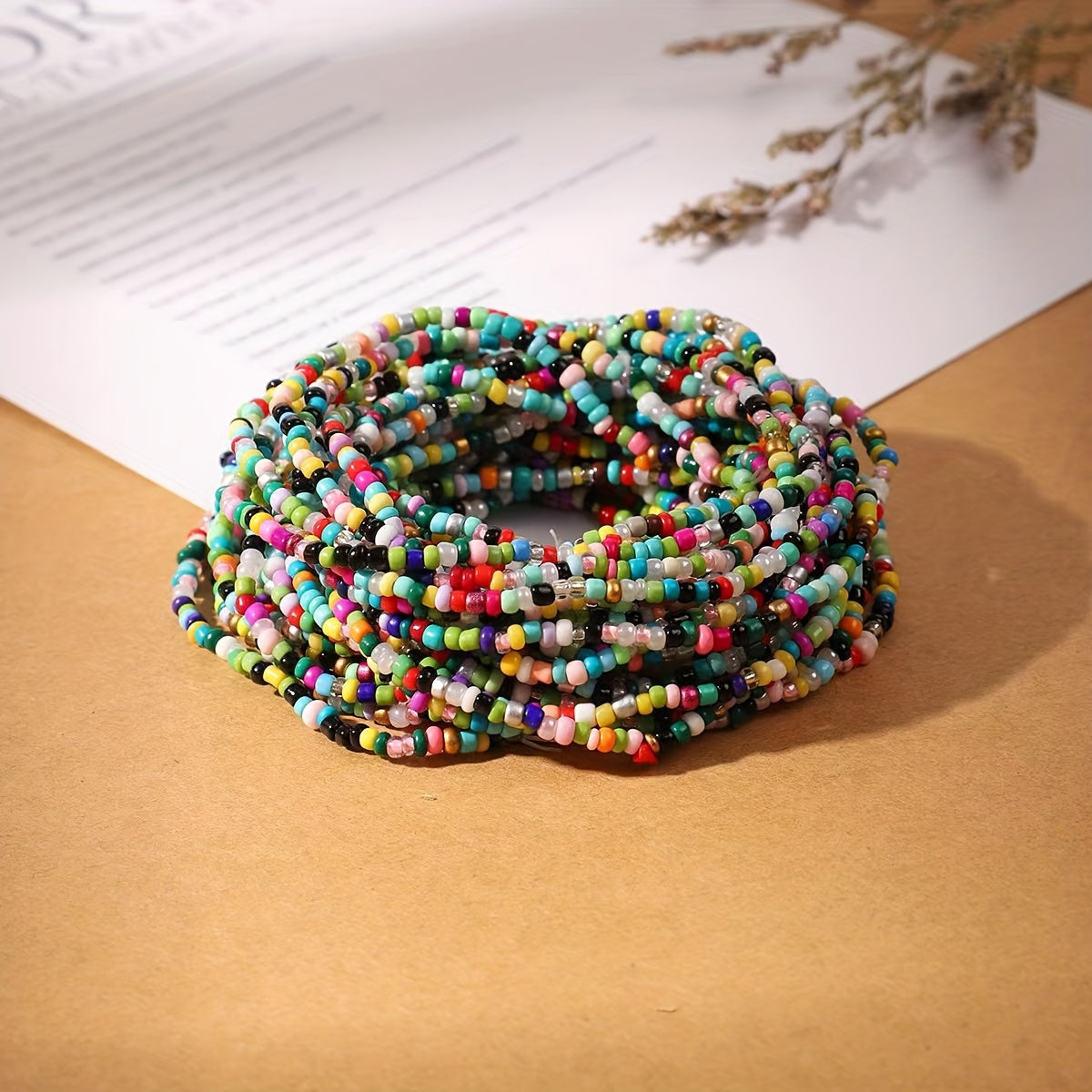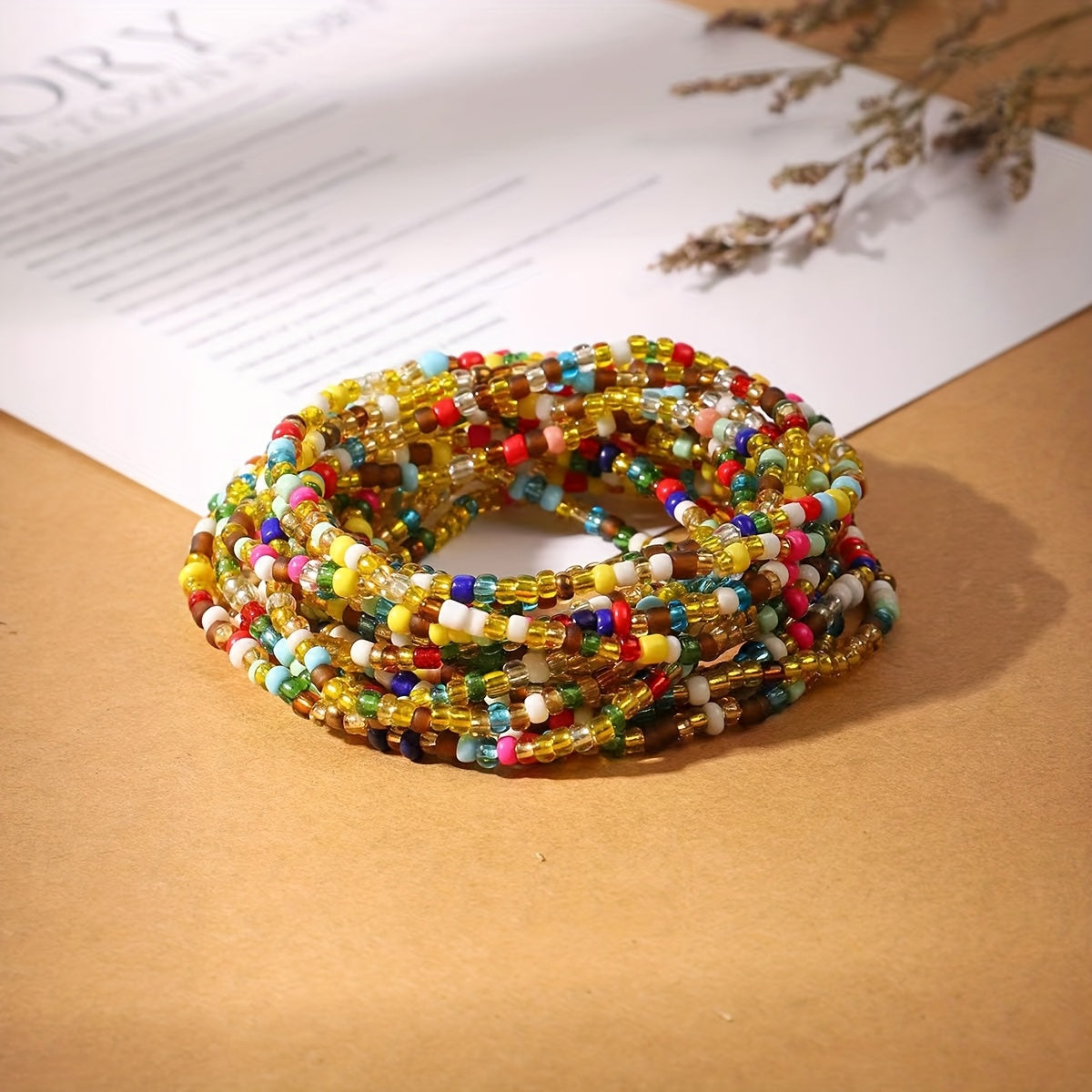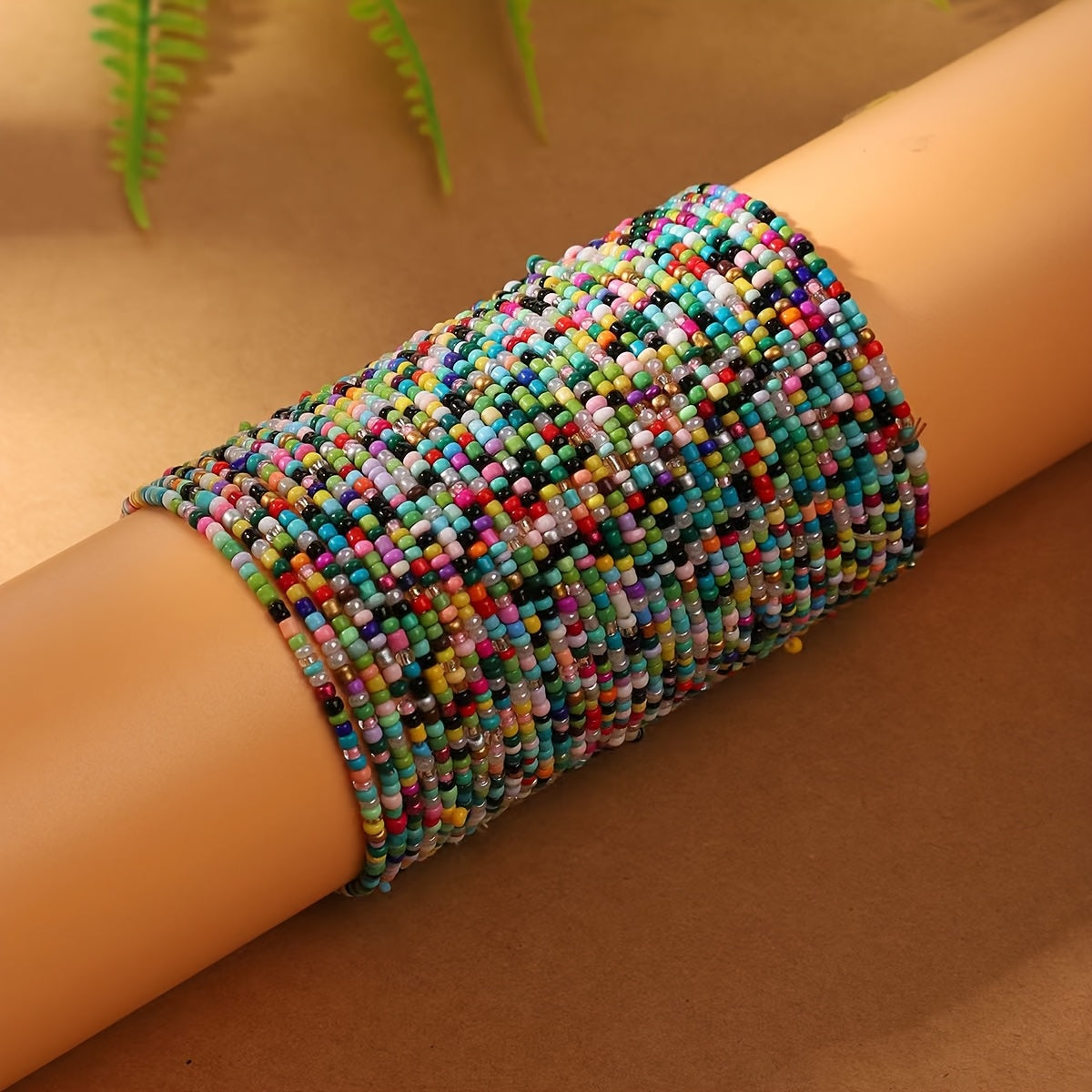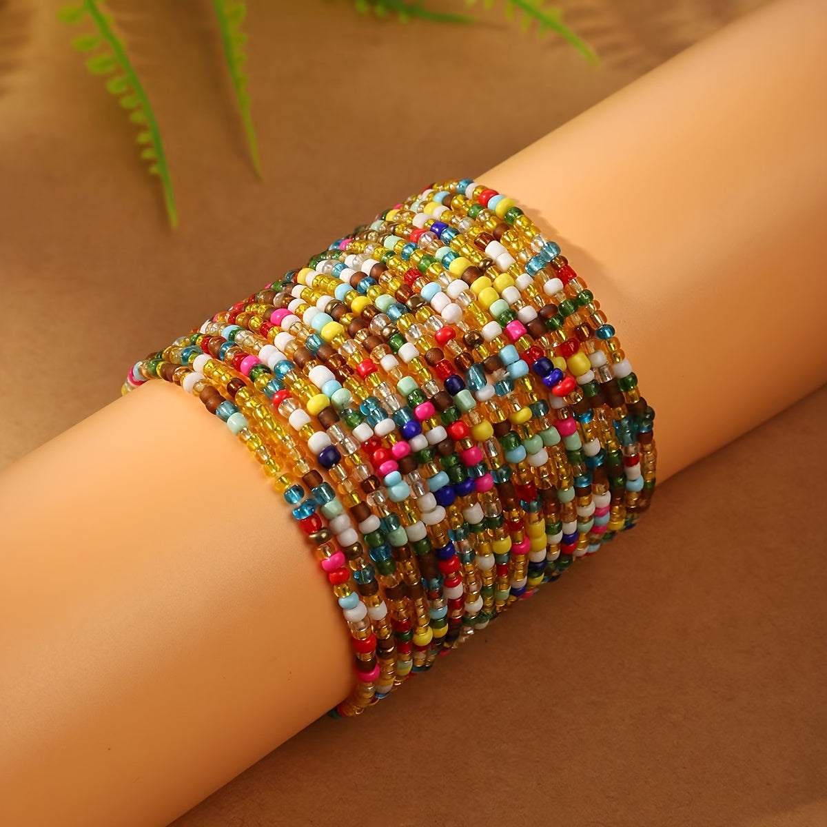Add a touch of bohemian charm to your outfit with this mixed bead stacking bracelet. The elastic design ensures a comfortable fit for all wrist sizes.