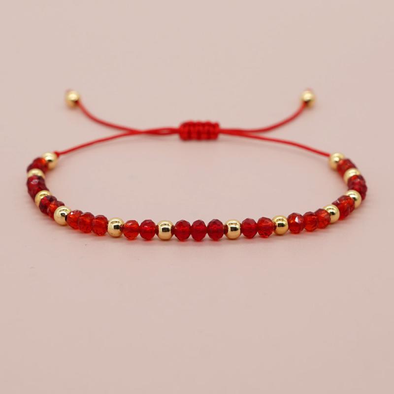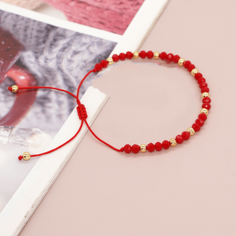 This adjustable red beaded bracelet features a golden charm and crystal. It is a versatile accessory suitable for women and men, making it a perfect gift for friends and family.