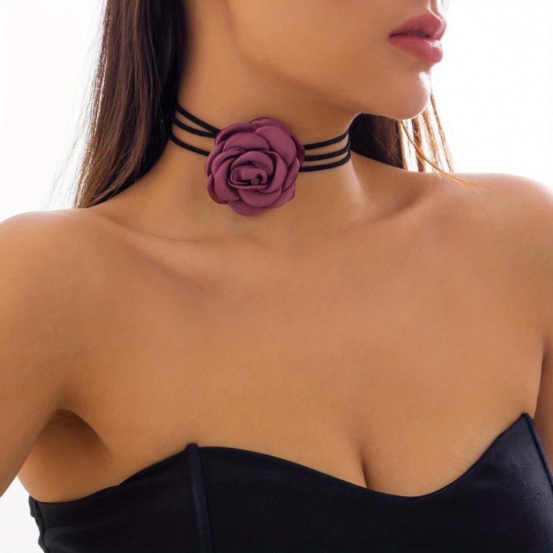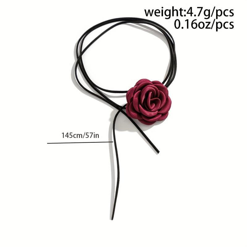 Add a touch of bohemian flair to your outfit with this floral choker necklace featuring a red rose design. Made from polyester fiber with a cord closure, this versatile piece is perfect for holiday parties or everyday wear.