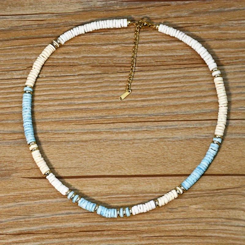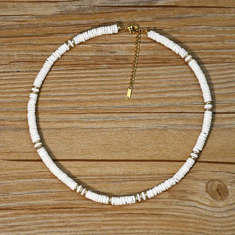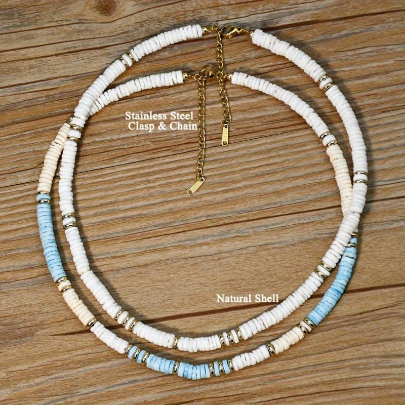 Elevate your summer style with this natural shell necklace perfect for beach vacations and surfing adventures. This choker features a sea bead strand that adds a touch of bohemian charm to your outfit.