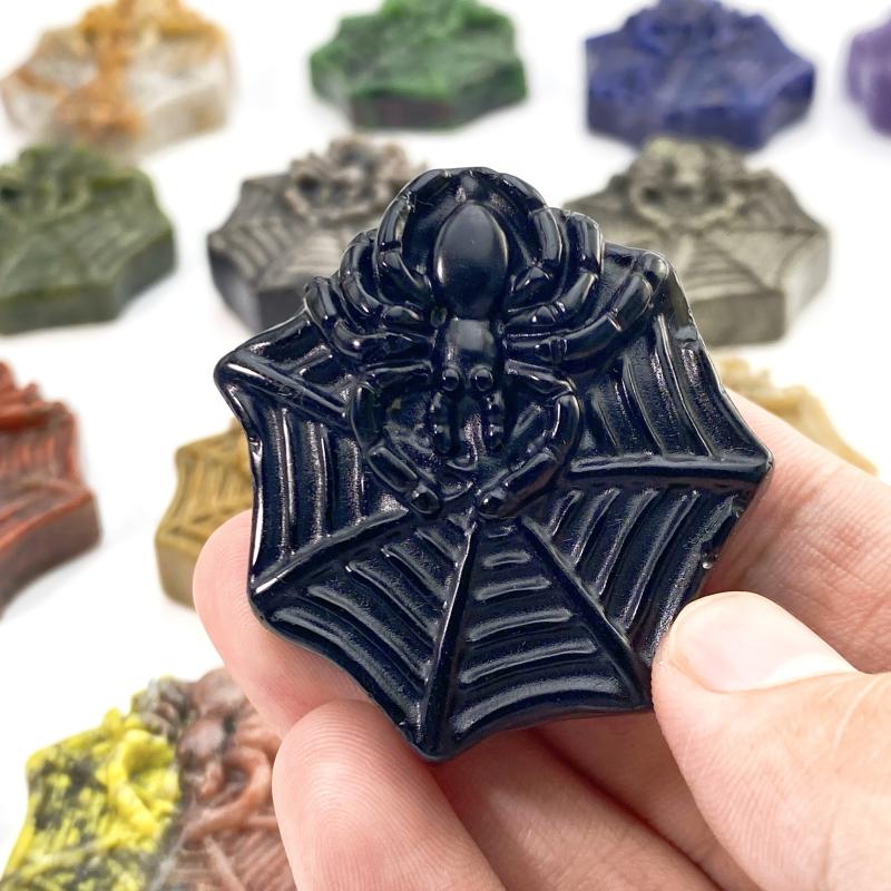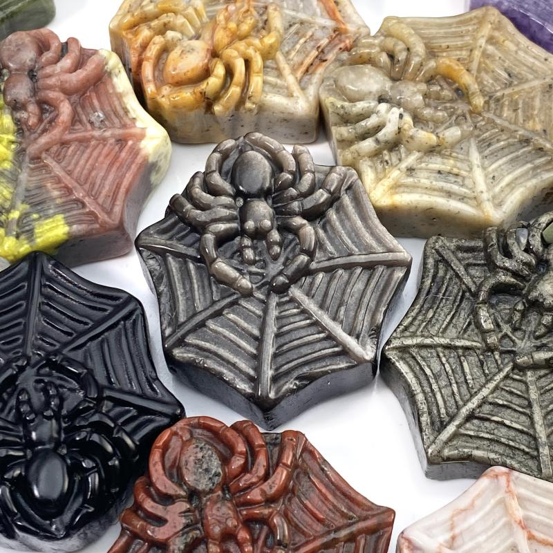 Add a touch of mystery to your home with this unique, intricately carved spider stone decoration. Perfect for gothic or bohemian decor styles.