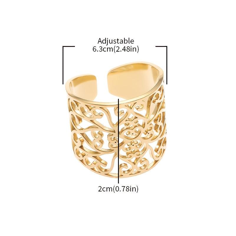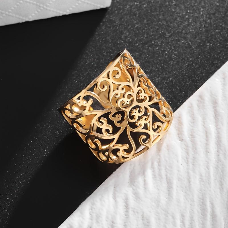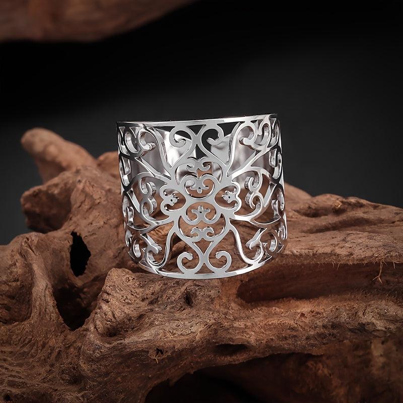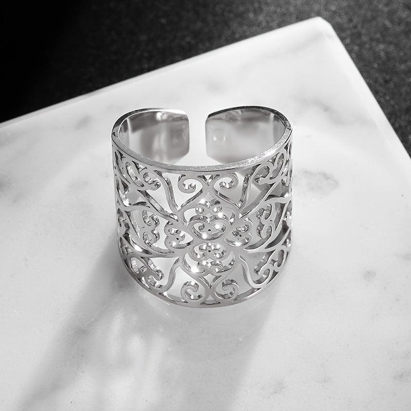 Bohemian Stainless Steel Hollow Ring, Unisex Daily Wear or Party Gift