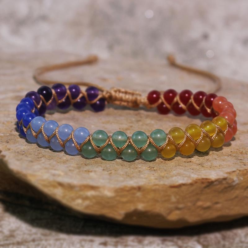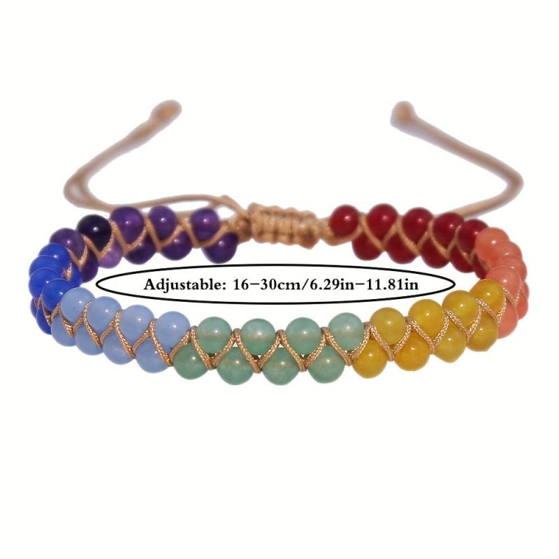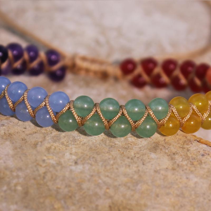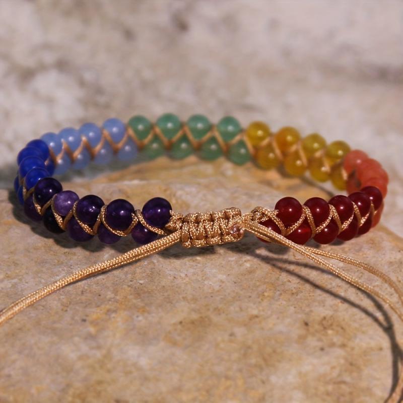 Enhance your spiritual energy with this bohemian style anklet featuring seven natural stones representing the seven chakras. The double-layer design adds a trendy touch to your outfit.
