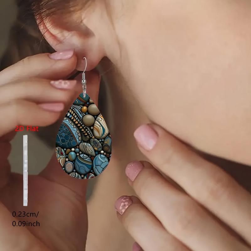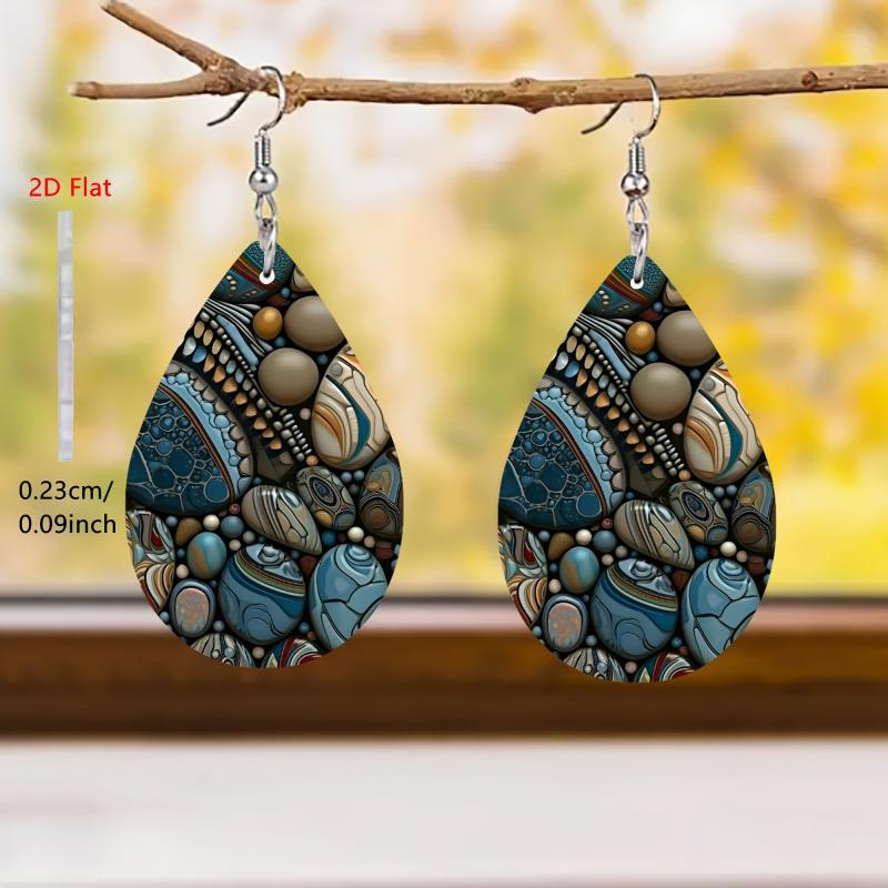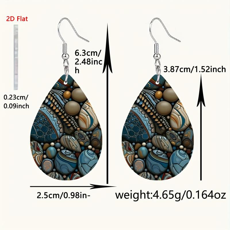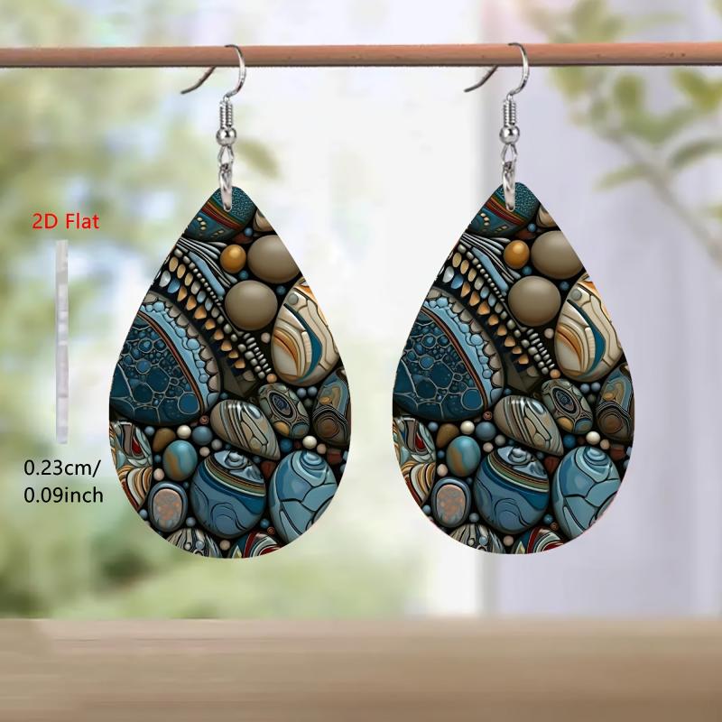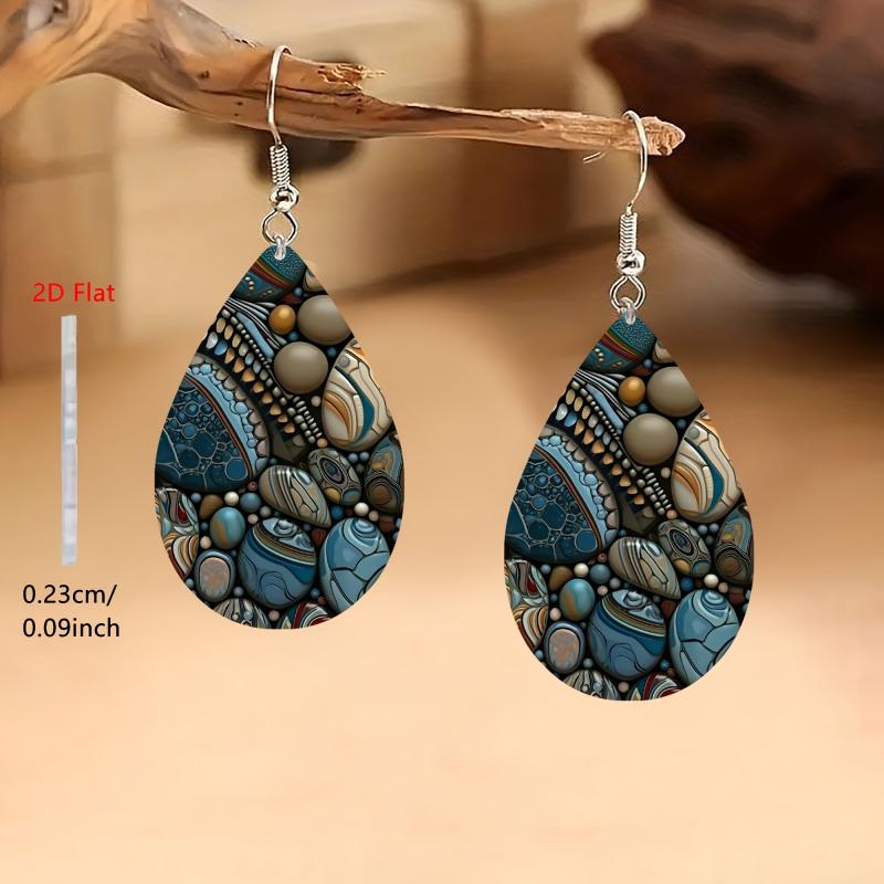 Elegant pair of dangle earrings featuring synthetic soft stone pattern in vintage design. Made with 316 stainless steel hook, perfect for bohemian fashion lovers.