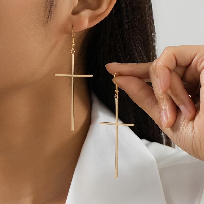 Add a touch of European and American flair with these versatile and personalized cross earrings. Perfect for a bohemian look.