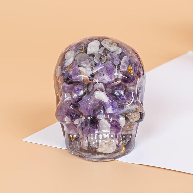 This crystal resin skull desk ornament is a unique and unusual home decor piece to add a touch of bohemian style to your space. It can also be used as a meditation stone or a natural stone jewelry accessory. This makes a great holiday gift idea too!