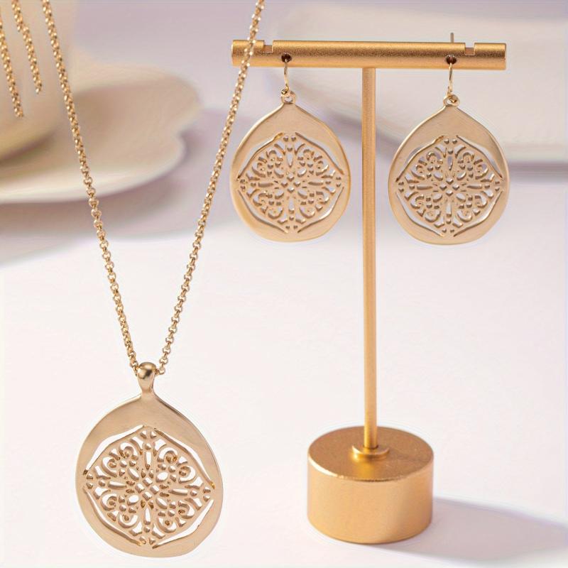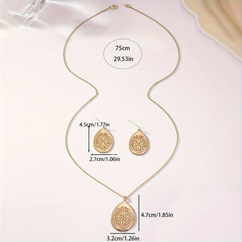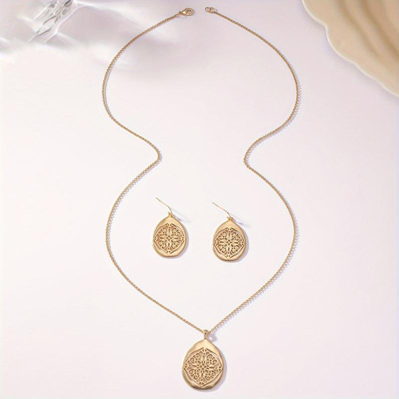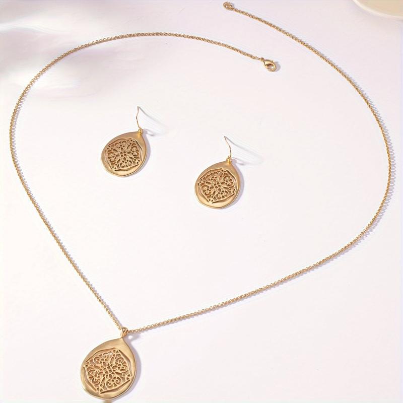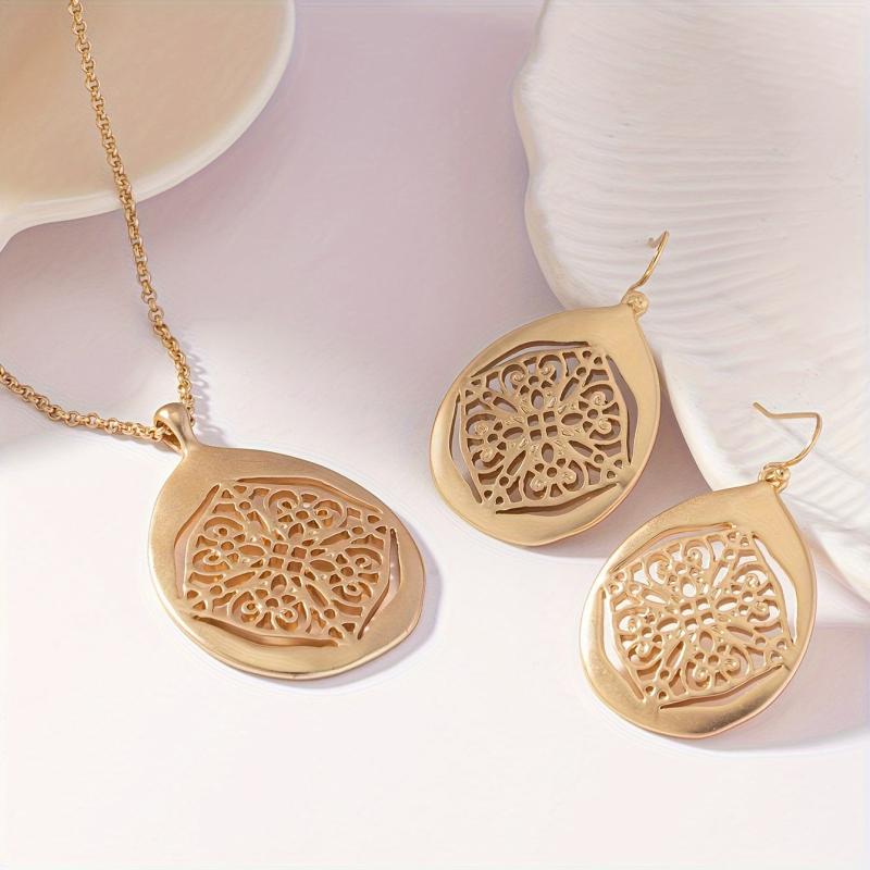Elevate your accessory game with this vintage-inspired Bohemian style 2-piece set featuring a metal hollow pattern. The antique golden finish exudes a classic charm, making it an ideal choice for adding a touch of femininity to your outfit.