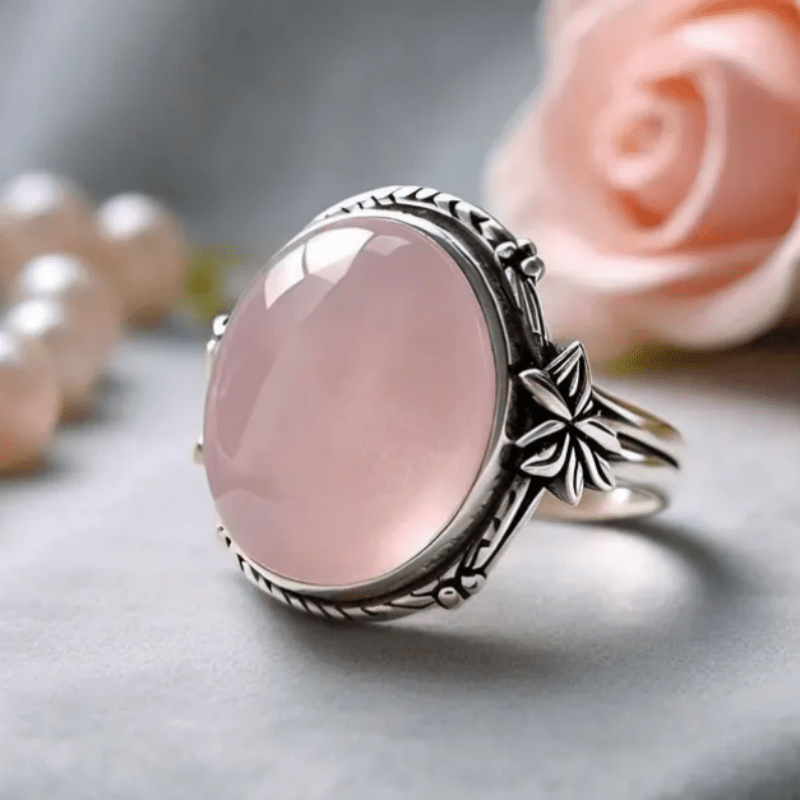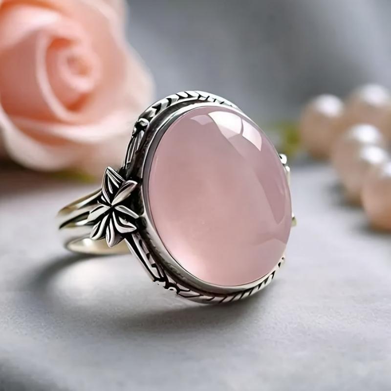 Vintage-inspired dark pink moonstone ring with synthetic gem, perfect for women's anniversary or birthday gift. Ideal for parties and special occasions.
