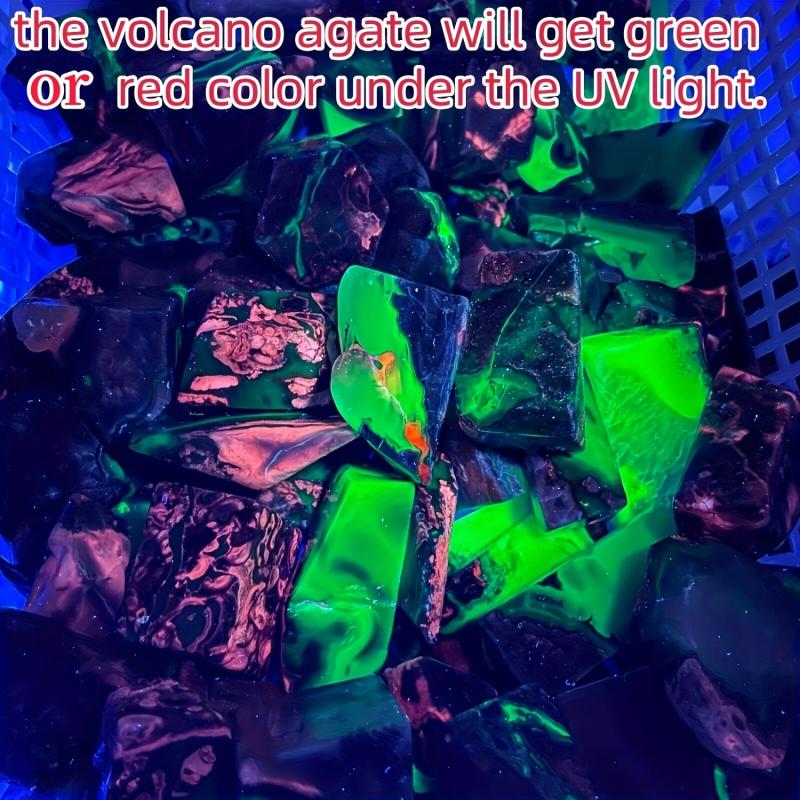 This unique red and green freeform crystal with spots is ideal for Christmas home decor. The fluorescent volcanic agate is sure to add a touch of bohemian style to any space.