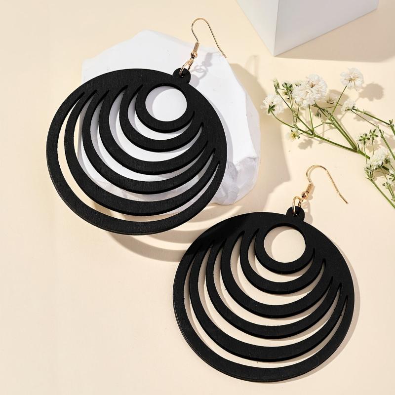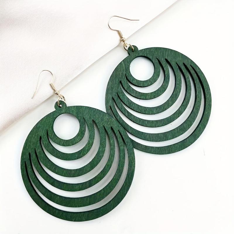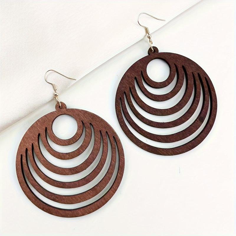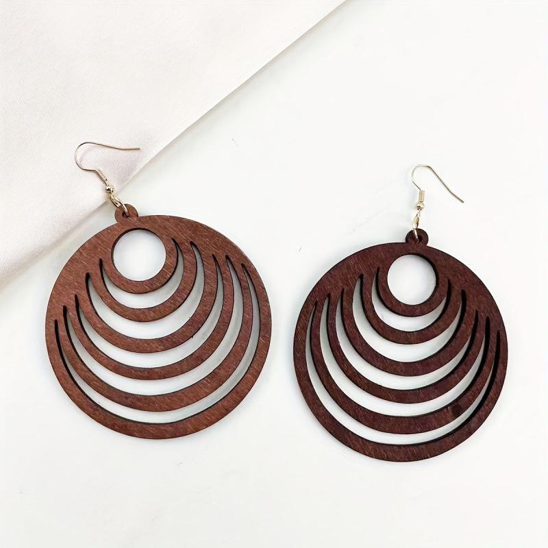 Add a touch of vintage bohemian style to your look with these round wooden pendant earrings. Perfect for autumn and fall, these earrings are a unique ear decor item.