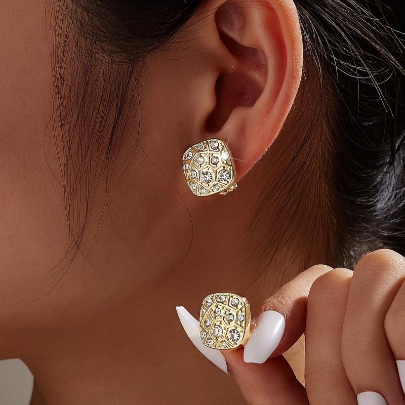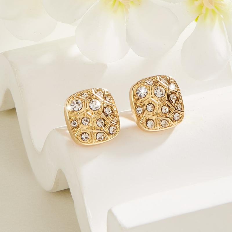 Chic geometric square earrings feature glass mosaic design with copper ear needle. Ideal for daily wear and perfect to add an elegant touch to any outfit.