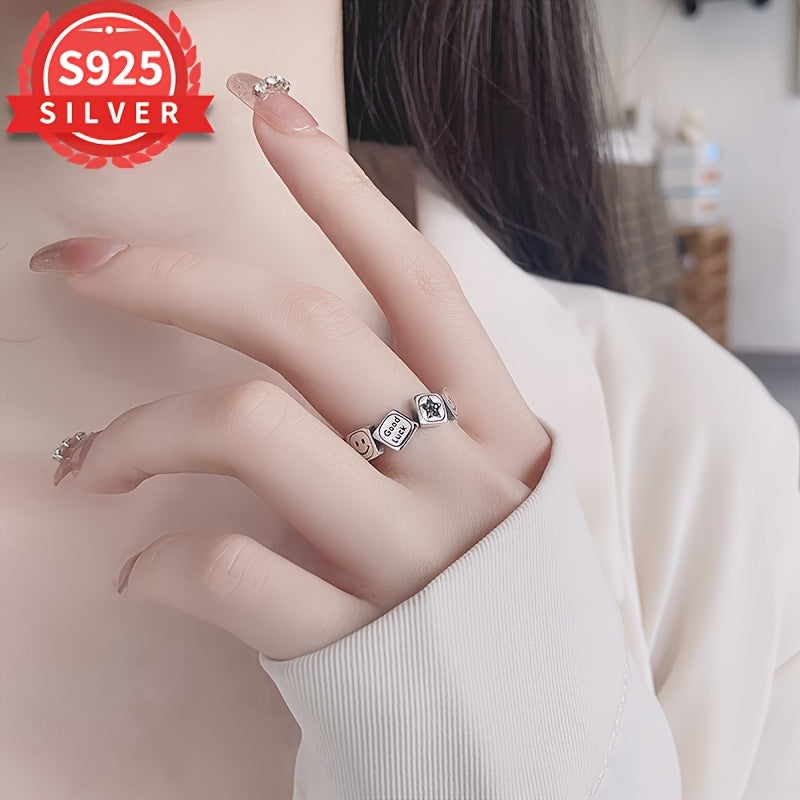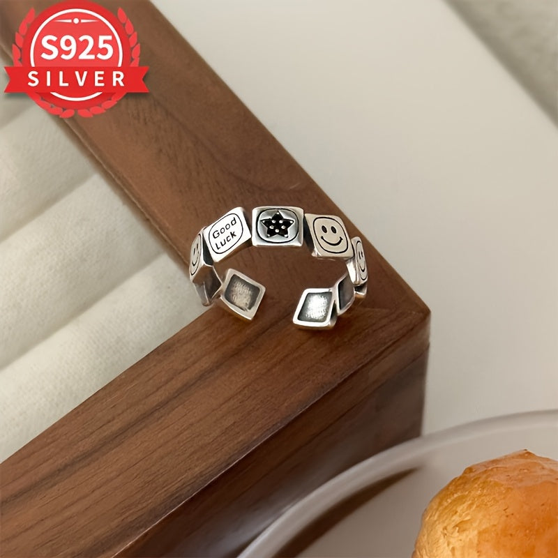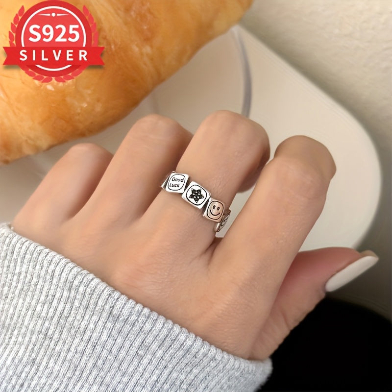This trendy square ring is made of 925 sterling silver plated with 18K gold. It is adjustable, hypoallergenic, anti-tarnish, lightweight, and stylish.