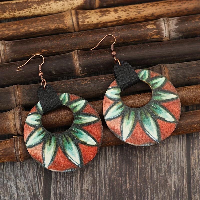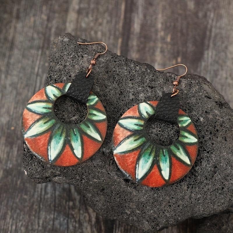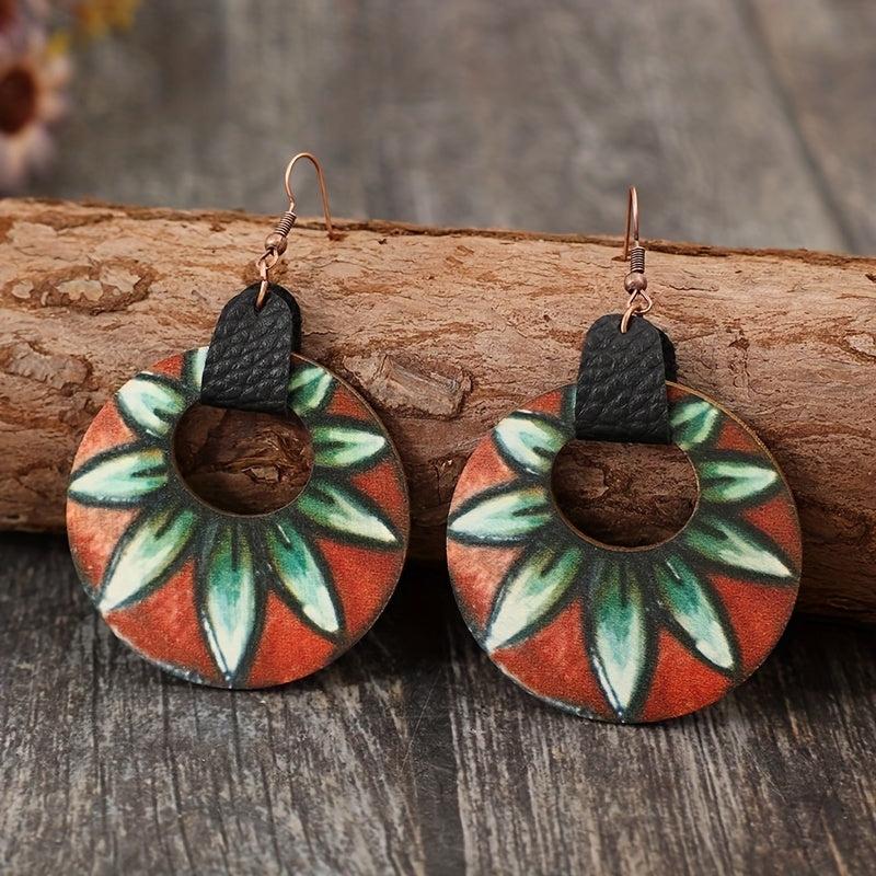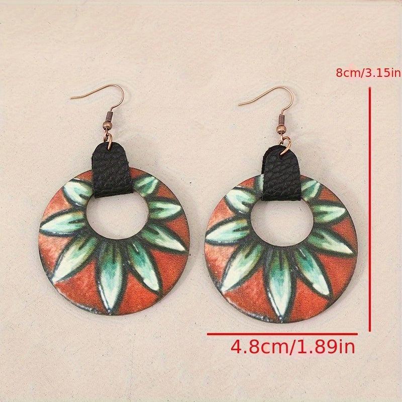 Vintage-inspired boho floral print earrings with metallic hooks. These lightweight hollow circle dangle earrings are perfect for women to wear all season long for any daily occasion.