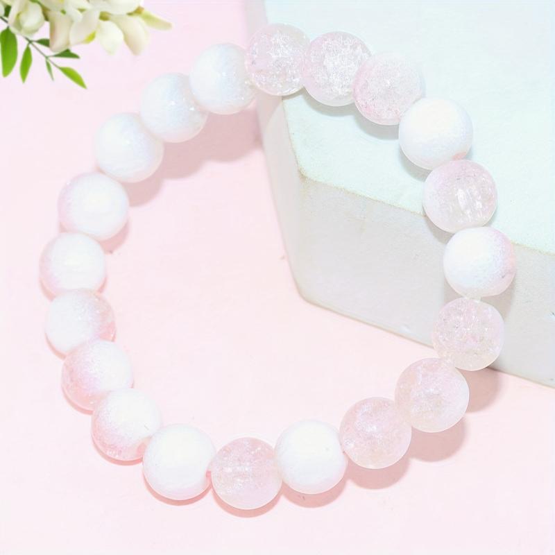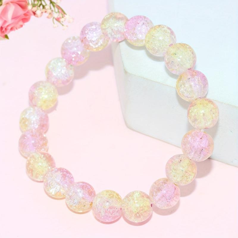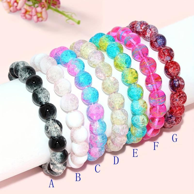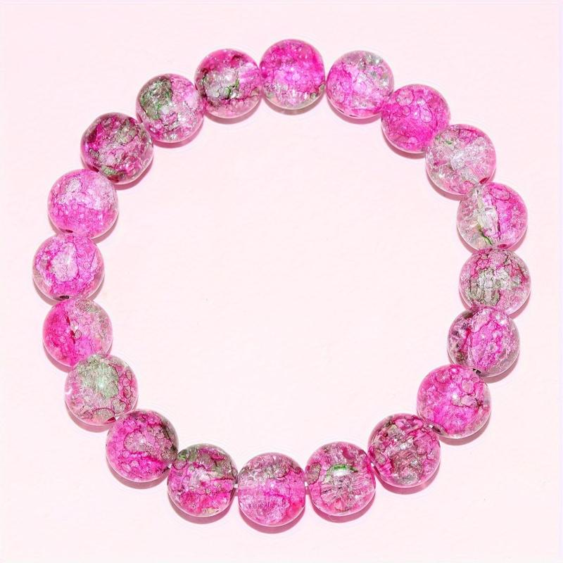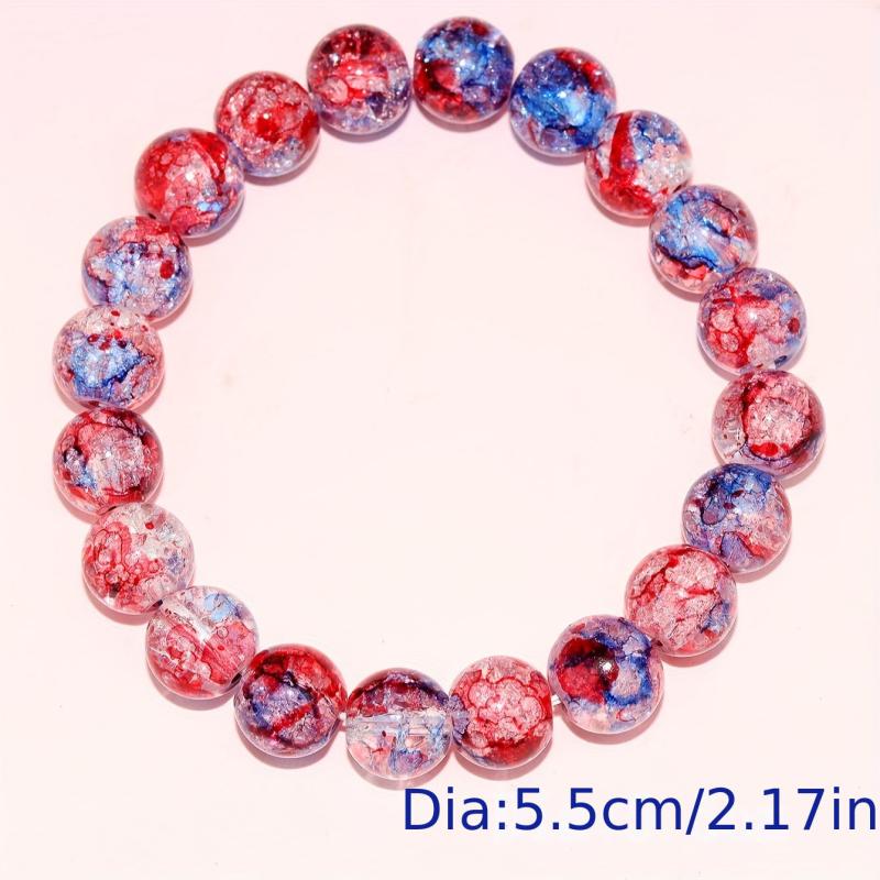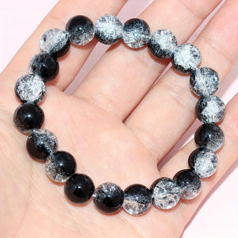 This Bohemian style bracelet features glass beads in a crackle two-tone design that's perfect for daily wear or parties. It's a versatile accessory that can be worn all season.
