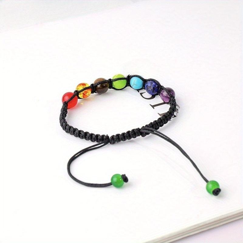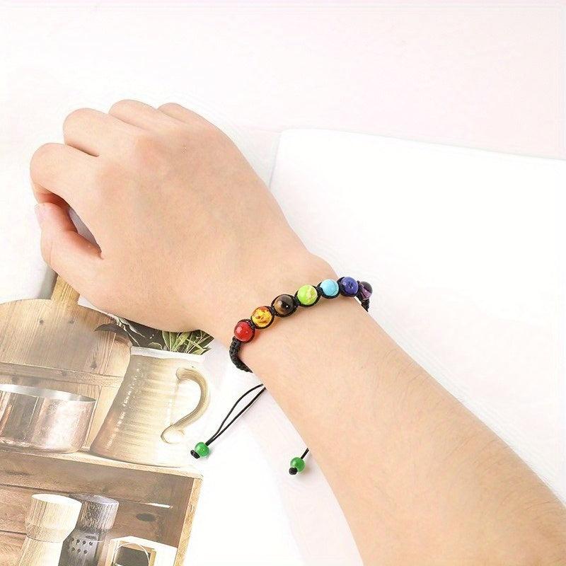 Add a pop of color to your outfit with this unique bracelet featuring vibrant glass beads on durable hemp rope.