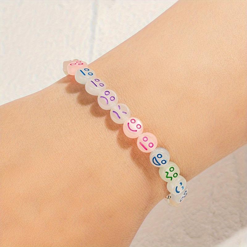 Elevate your casual look with this boho glow in the dark beaded bracelet. Made of colorful resin, it is perfect for adding a touch of fun to your outfit or as a unique gift.