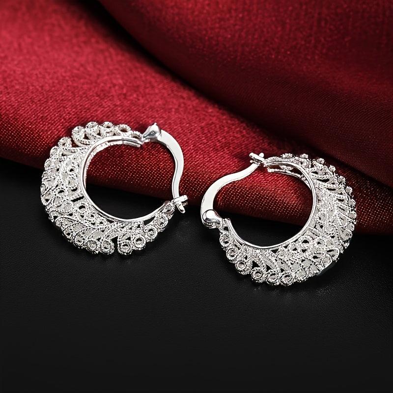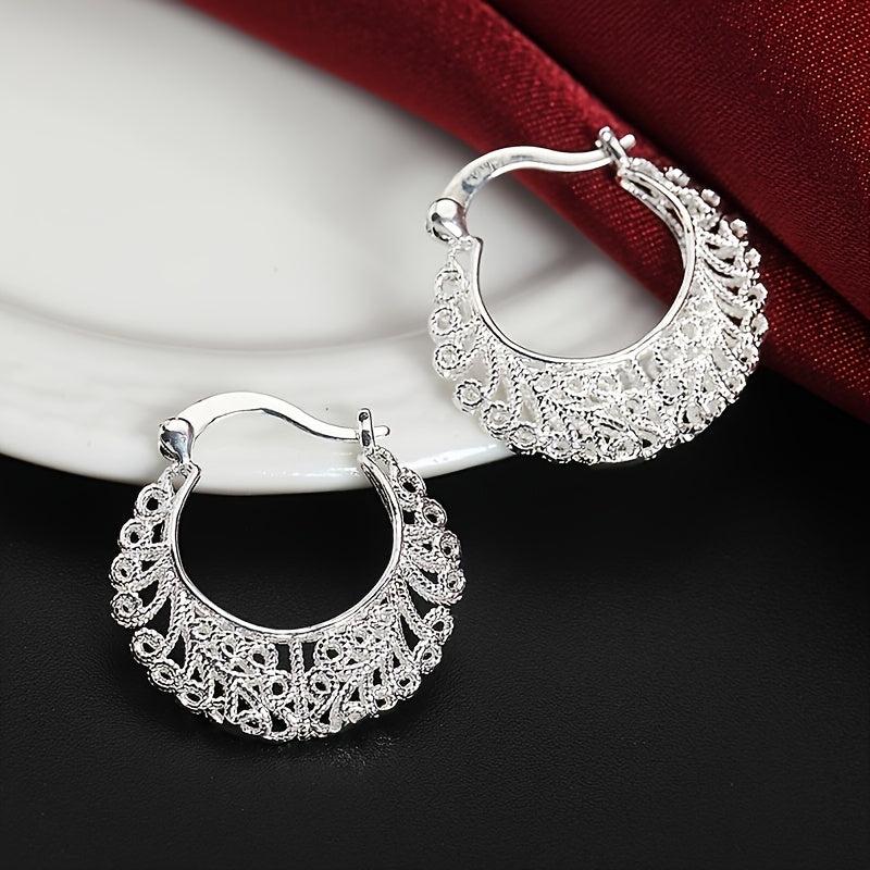These beautiful boho hoop earrings feature a hollow floral design that adds a touch of elegance to any outfit. Made from nickel and copper, they are perfect for daily wear or as a thoughtful gift for a special woman.
