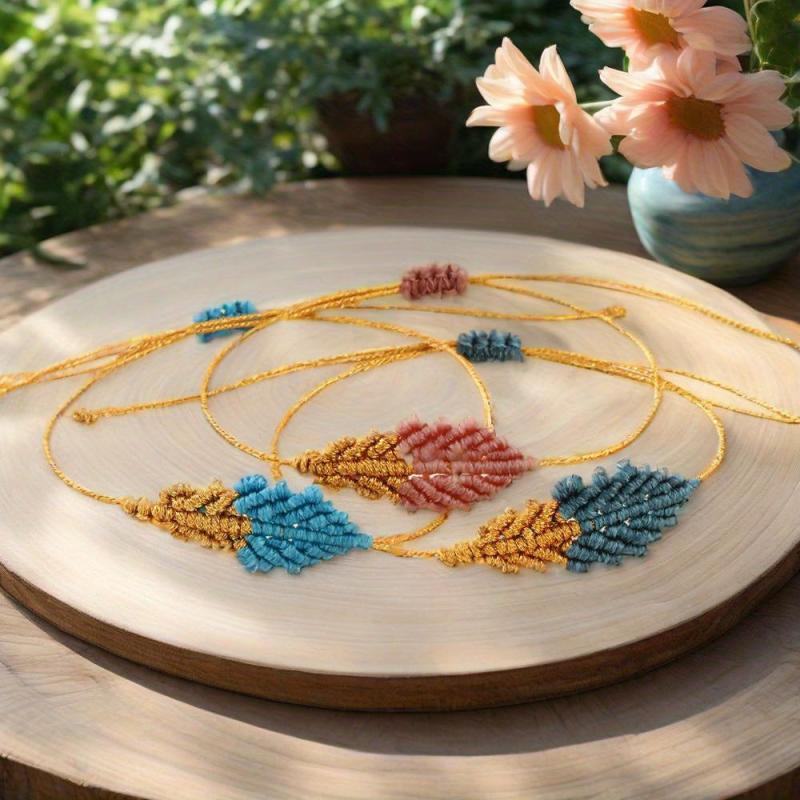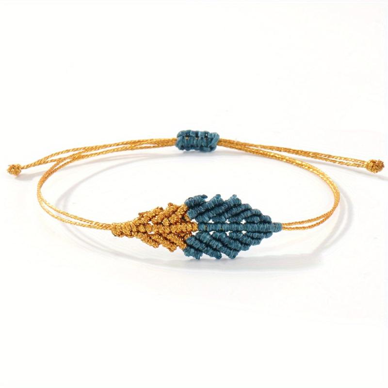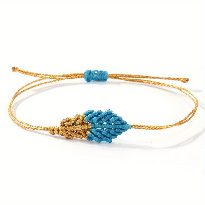 Add a touch of bohemian flair to your outfit with this handwoven leaf bracelet featuring turquoise, golden yellow, and red accents. Perfect for everyday wear, parties, and weddings.