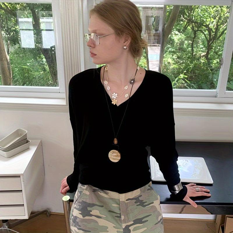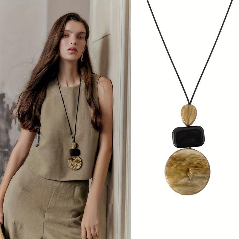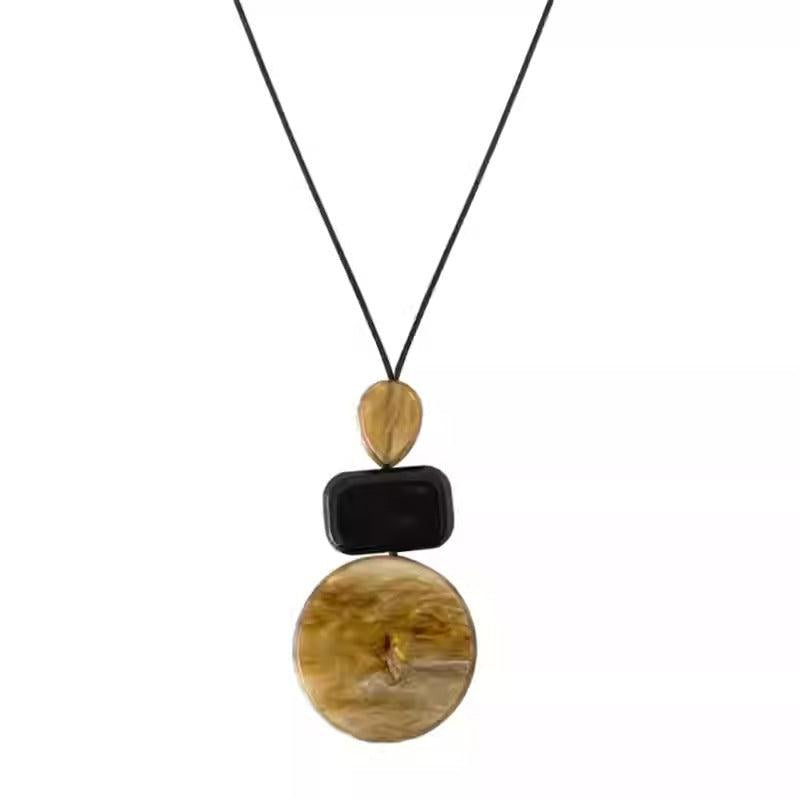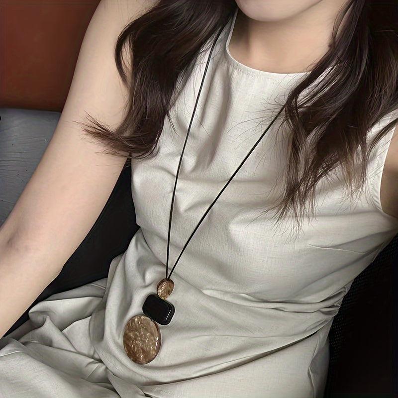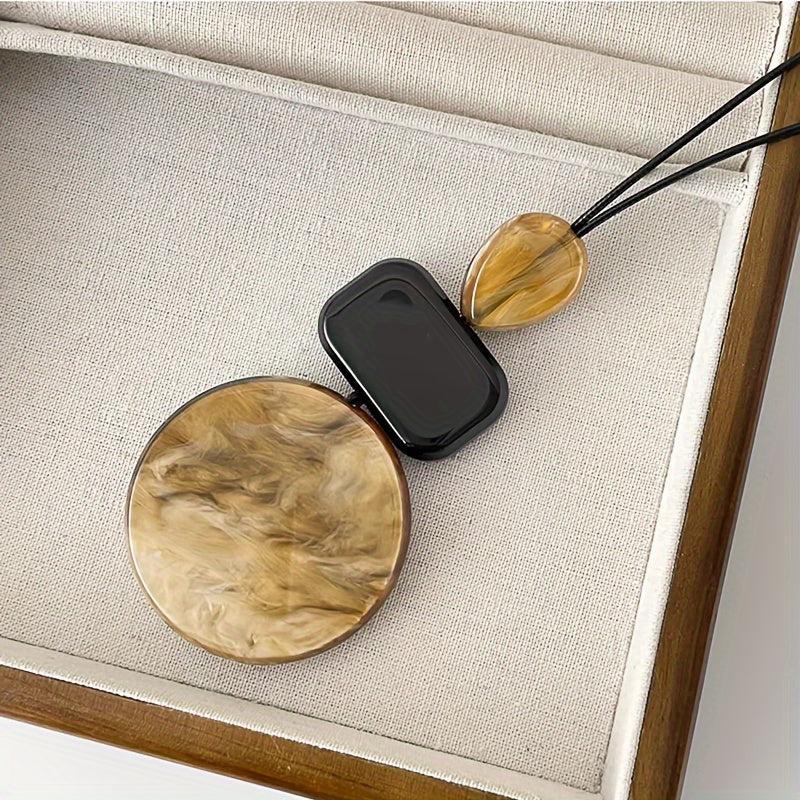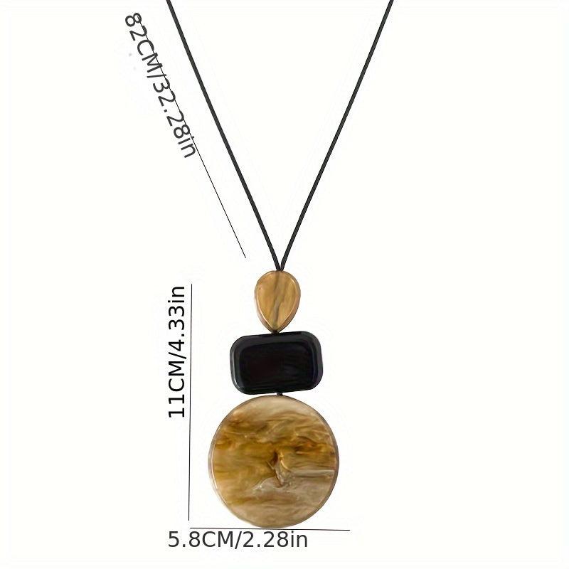 Elevate your style with this bohemian preppy resin pendant necklace featuring geometric irregular charms in artistic ink design. The long sweater chain is versatile and complements various outfits.
