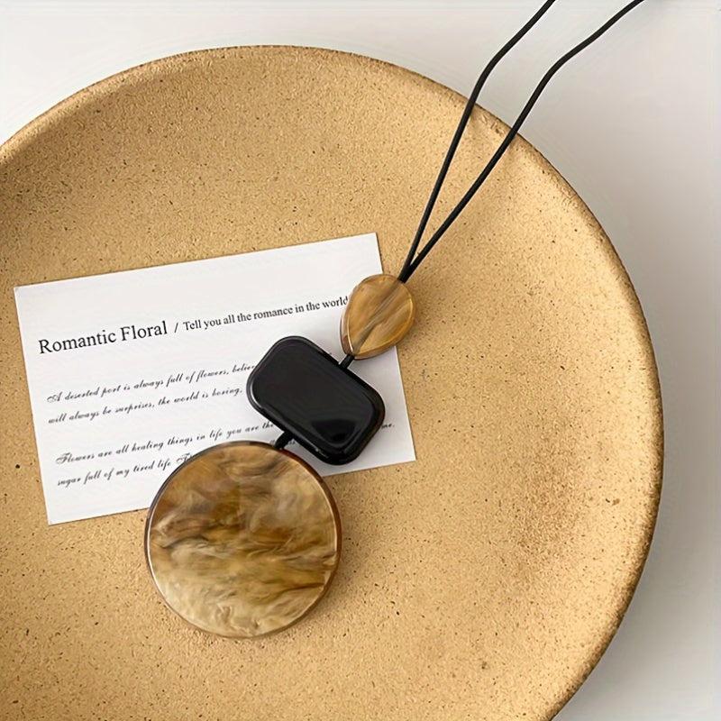Boho Preppy Resin Pendant Necklace Golden Brown Tones