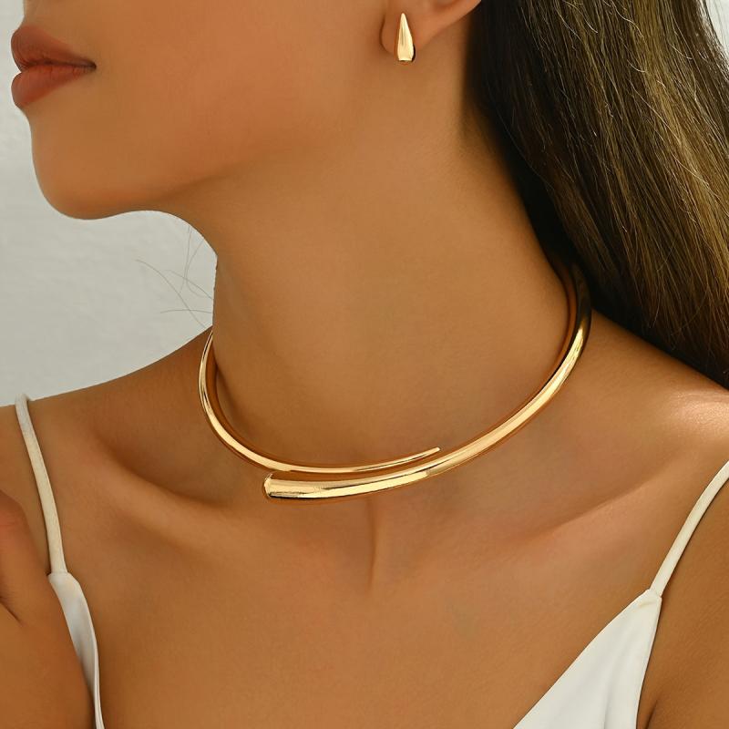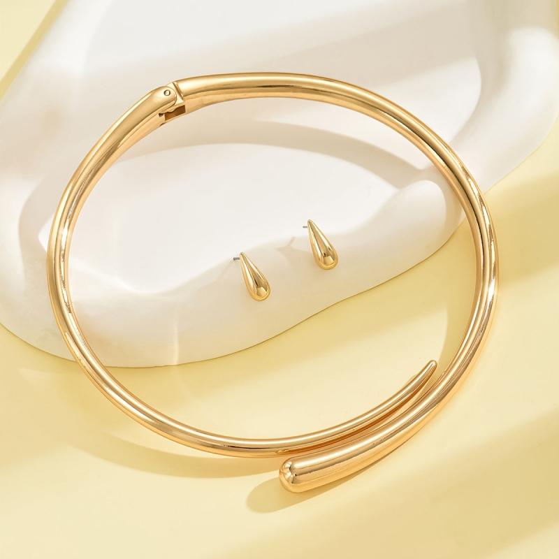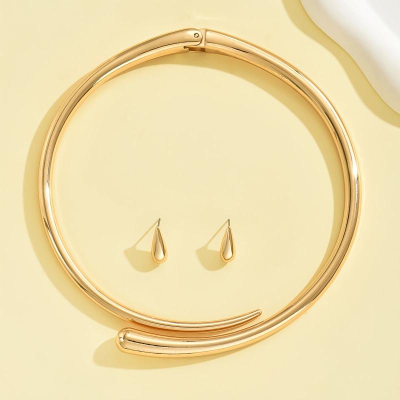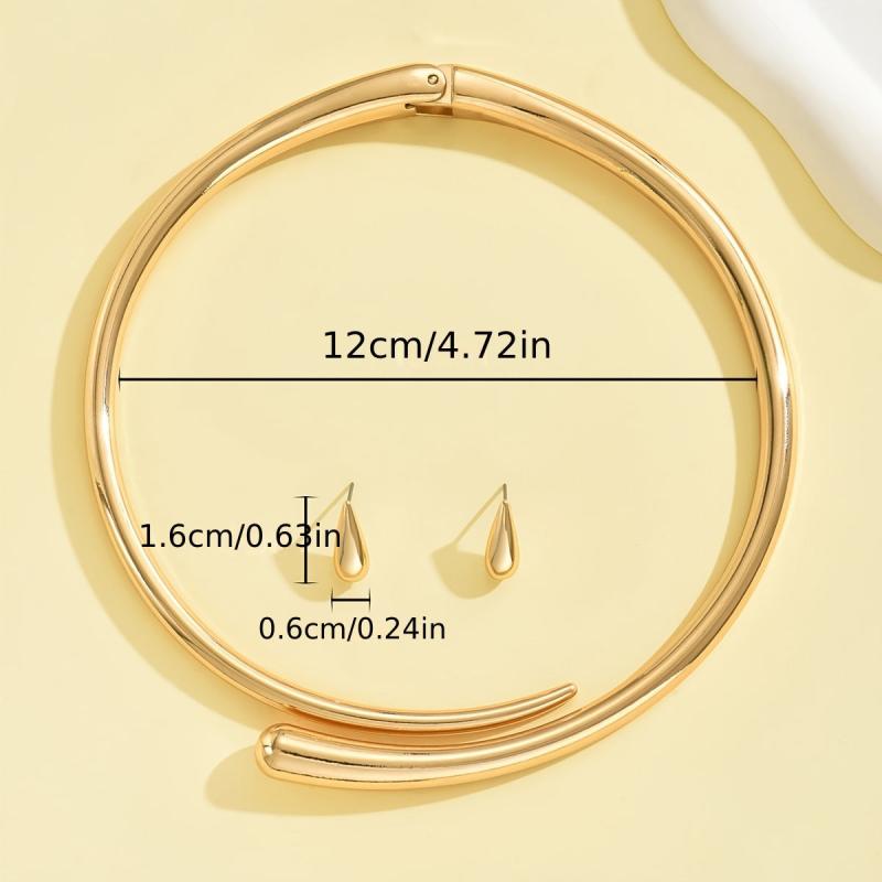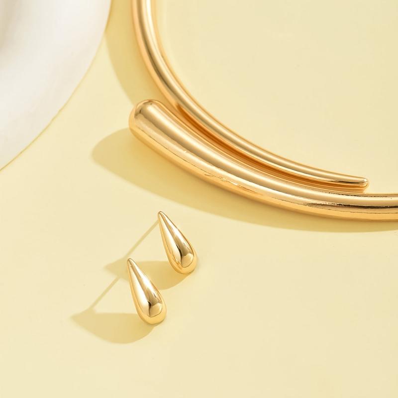 This set includes a collar necklace and teardrop earrings made of zinc alloy with 14K gold plating. Ideal for daily wear or summer beach activities.
