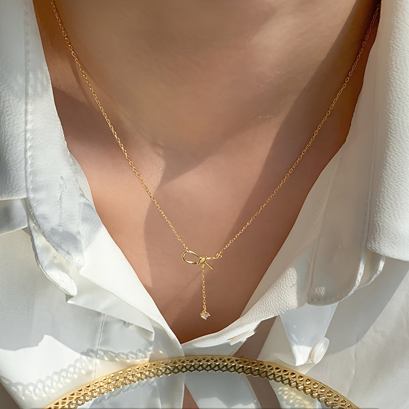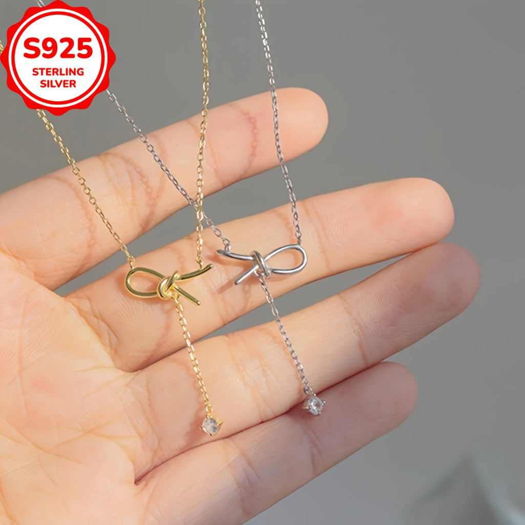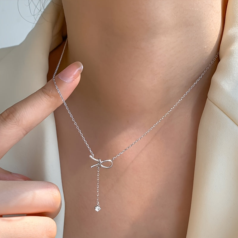 Add a touch of vintage boho charm with this 925 sterling silver necklace featuring synthetic zirconia embellishments. Perfect for daily wear or as a gift for any occasion, this light knot tassel clavicle chain is ideal for all seasons.
