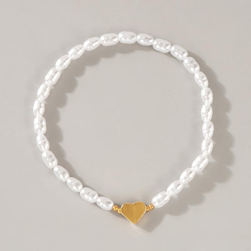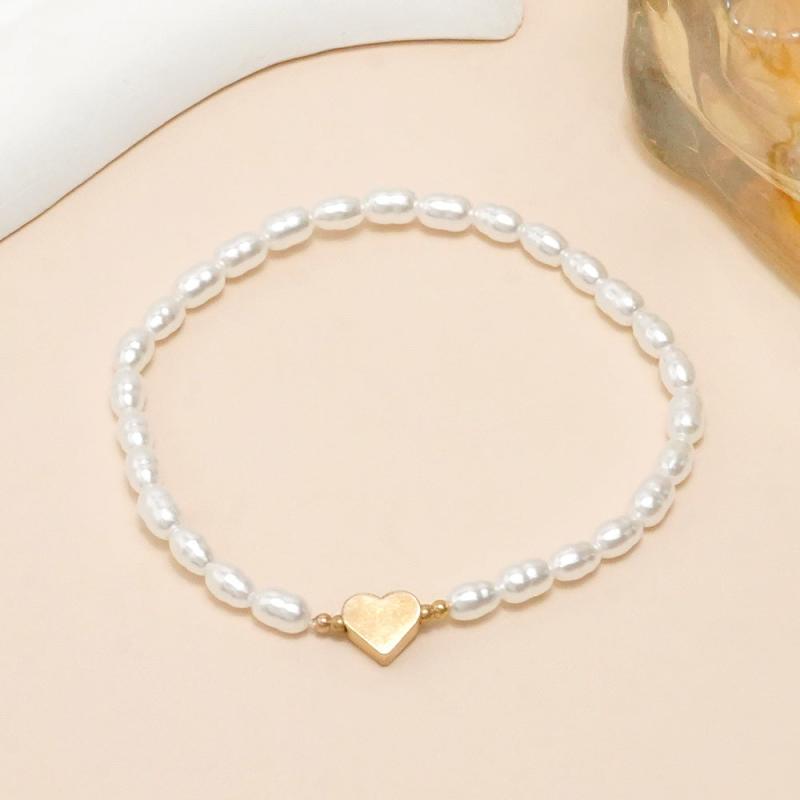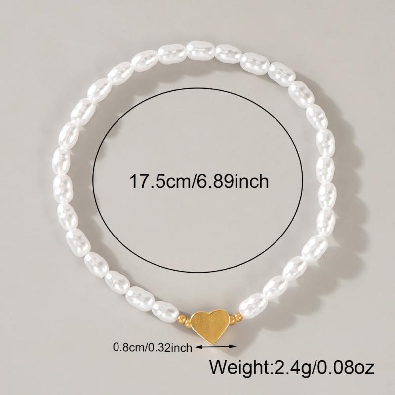 Upgrade your look with this chic elastic bracelet featuring faux pearl and iron stone heart shaped charms. Ideal for casual vacations and travel.