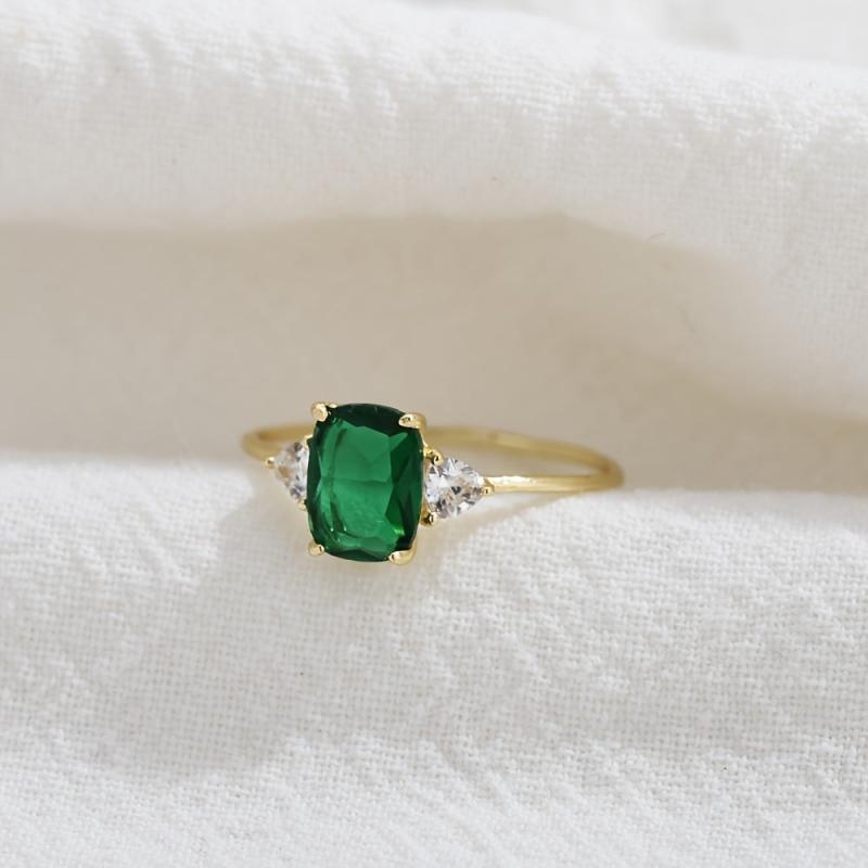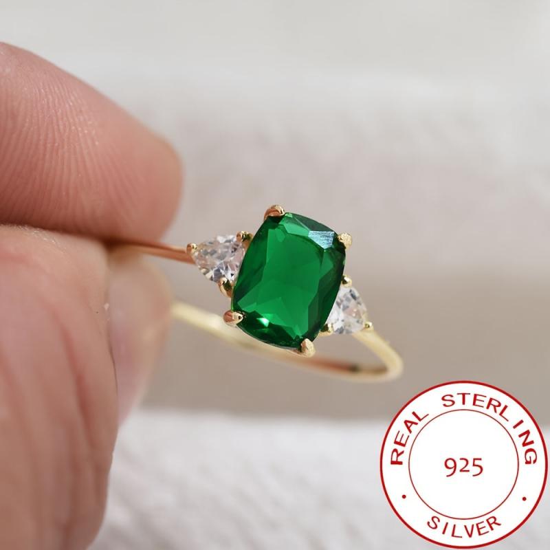 Elevate your style with this chic 925 sterling silver ring featuring a synthetic green stone. This geometric women's high jewelry is perfect for daily wear and makes a great gift.