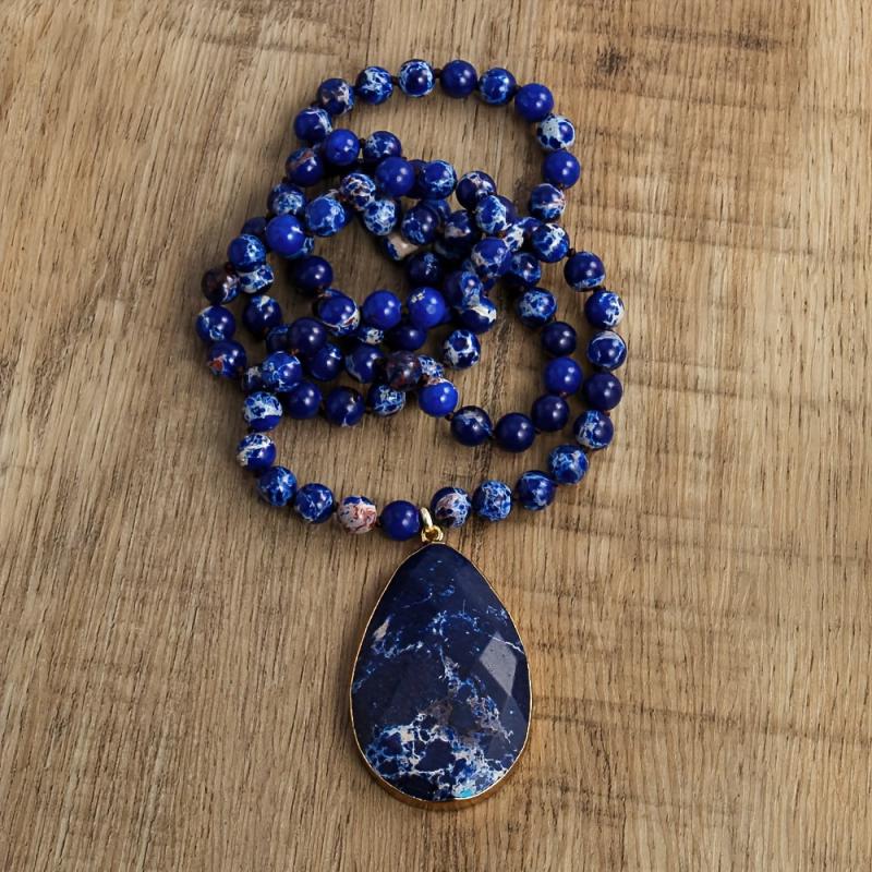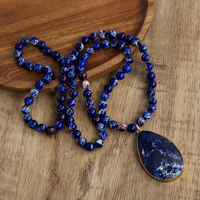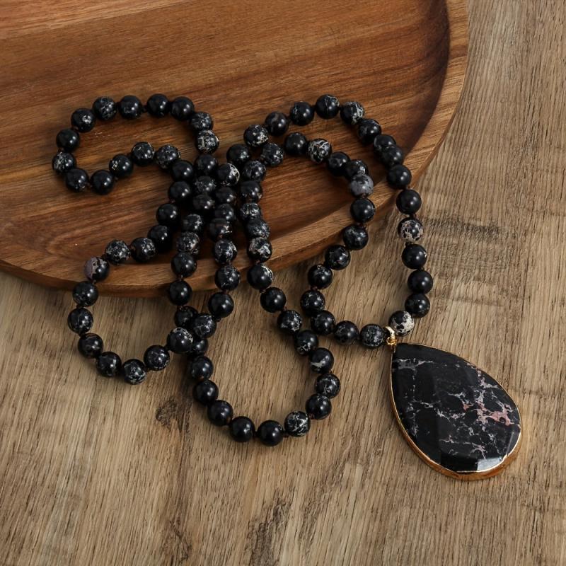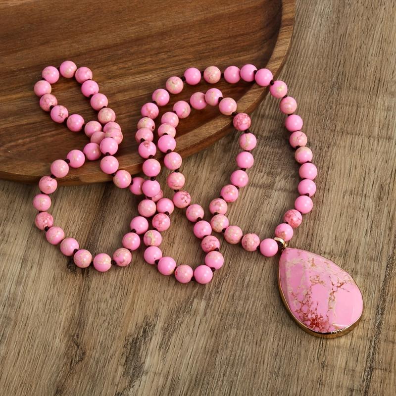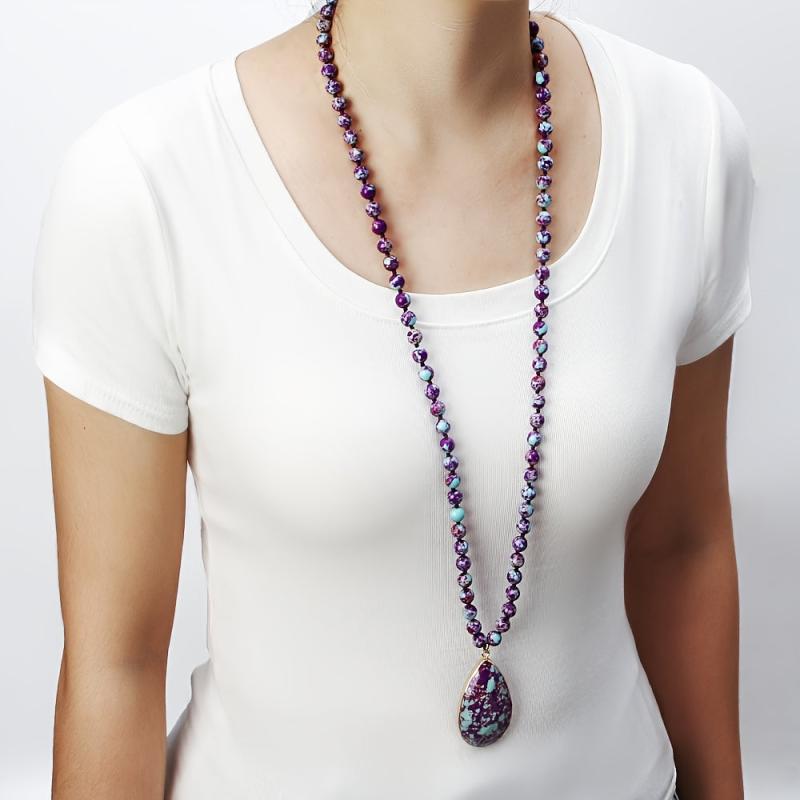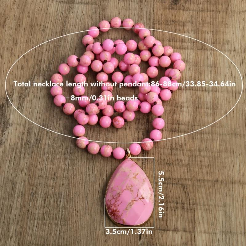 Elevate your style with this bohemian-inspired women's necklace featuring 8mm beaded knotting and a colorful teardrop stone pendant. This versatile piece requires no power and is perfect for daily wear and showing pride.