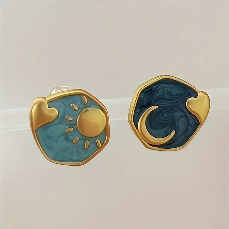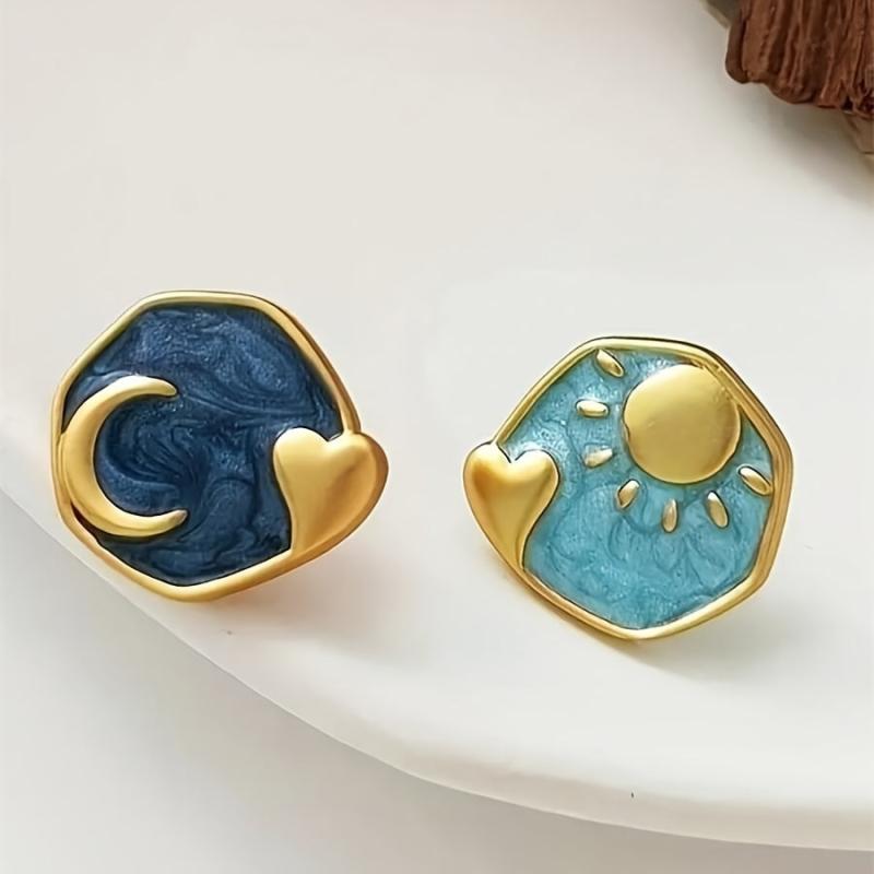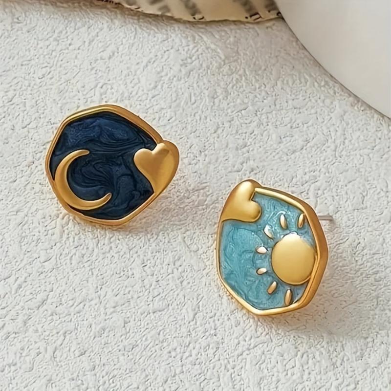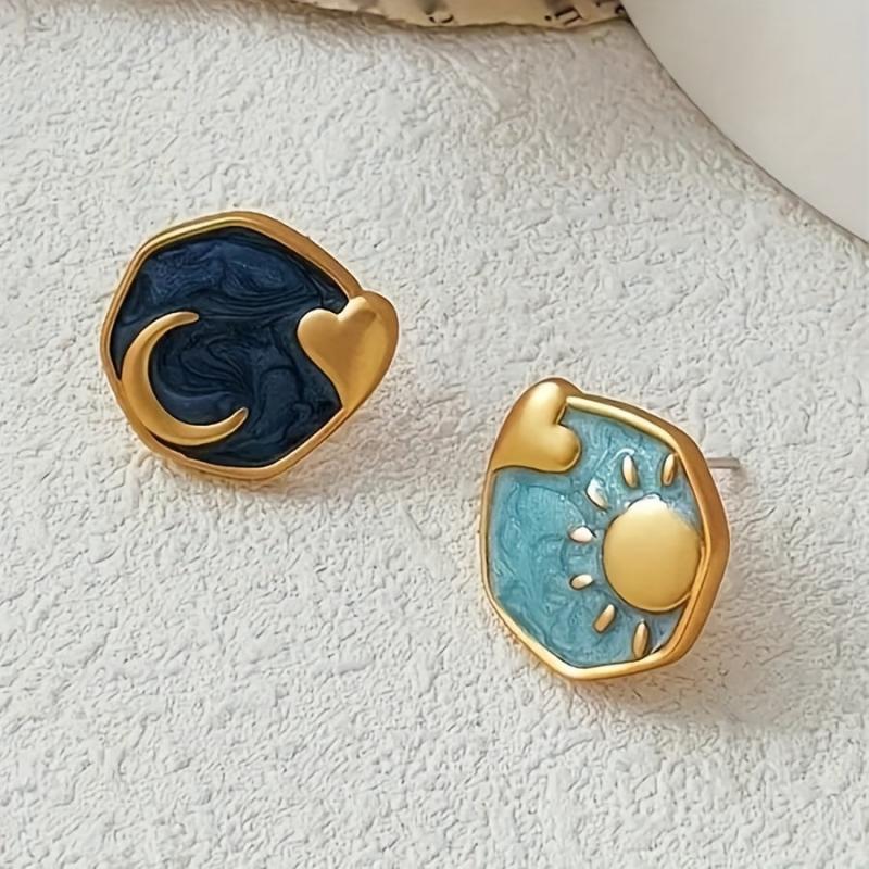 These beautiful Boho Sun & Moon Heart Shaped Enamel Stud Earrings are perfect for daily wear or parties. Made with vintage inspired copper and stainless steel posts, they add a touch of charm to any outfit.