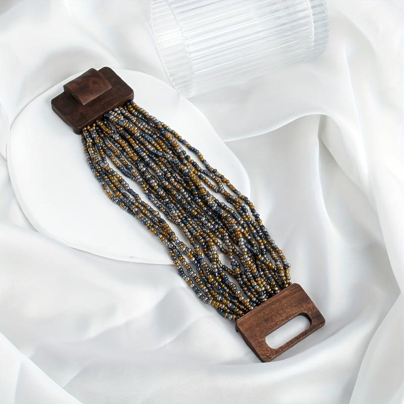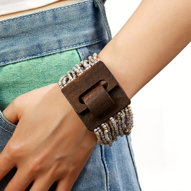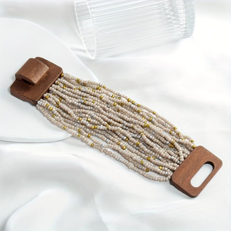 Add a touch of bohemian style to your look with this beaded stretch bracelet. Perfect accessory for women to wear in all seasons.
