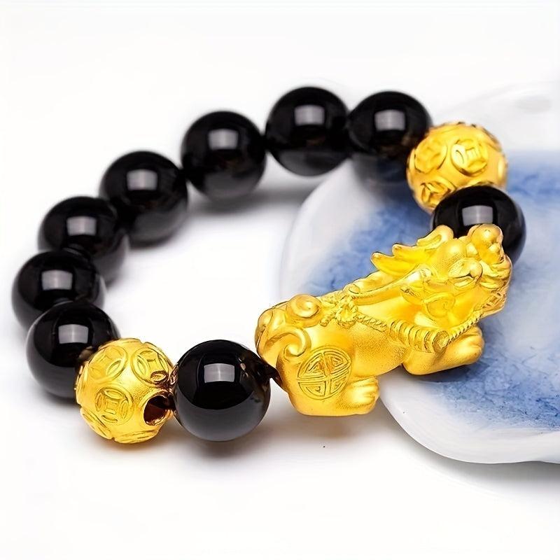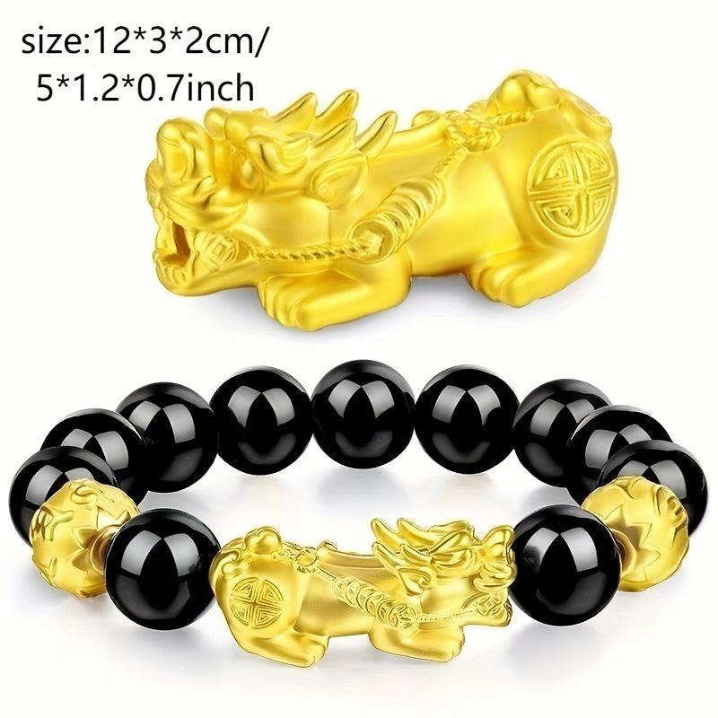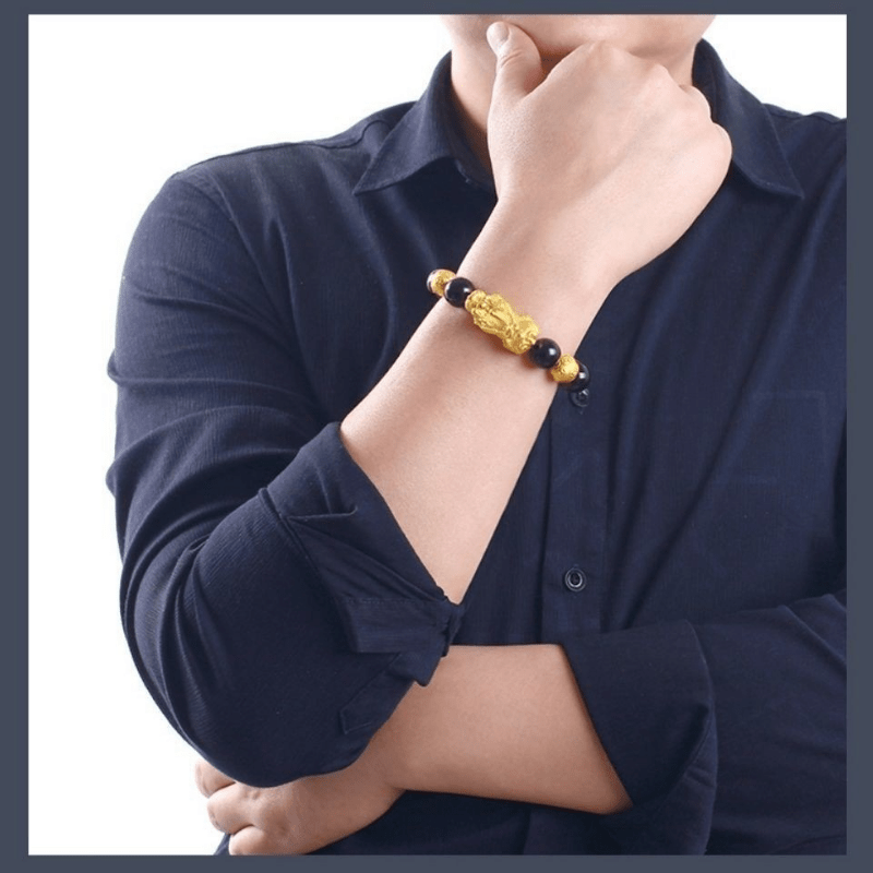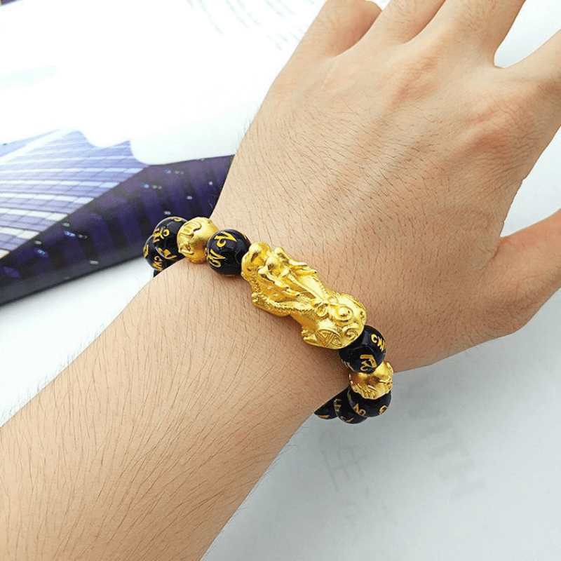 Add a touch of mythical wild animal charm to your look with this brass plated hand string featuring the iconic Om Mani Padme Hum mantra.