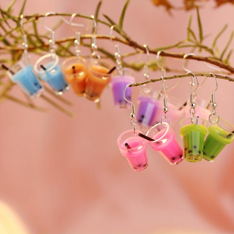Add a whimsical touch to your daily outfits or party look with these adorable bubble tea drop earrings. Choose your favorite flavor and match with any outfit.