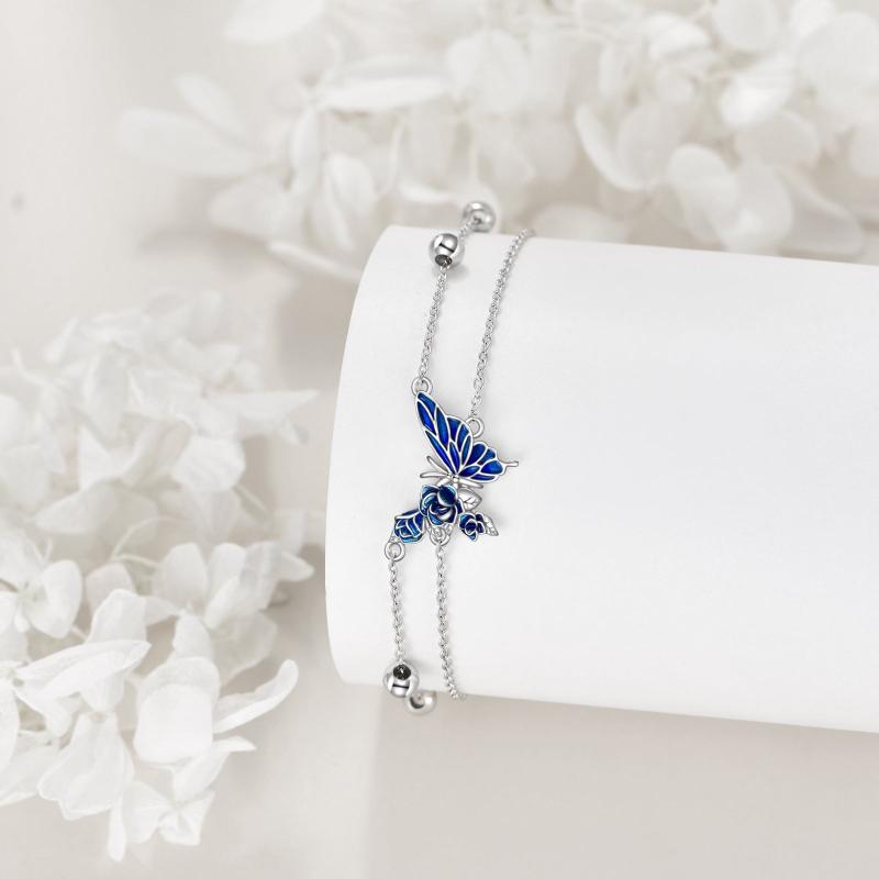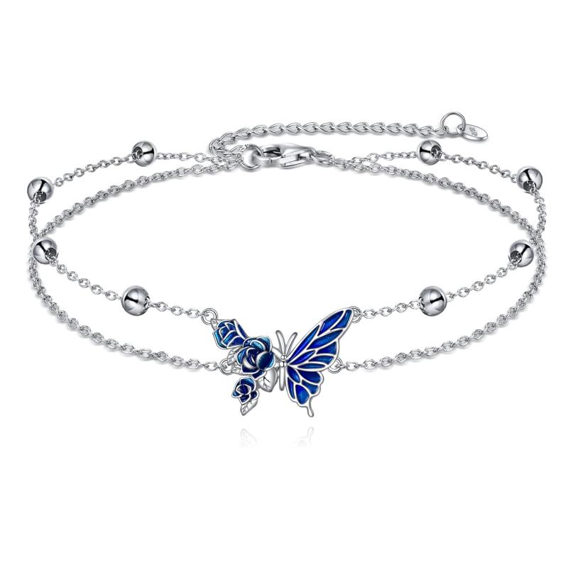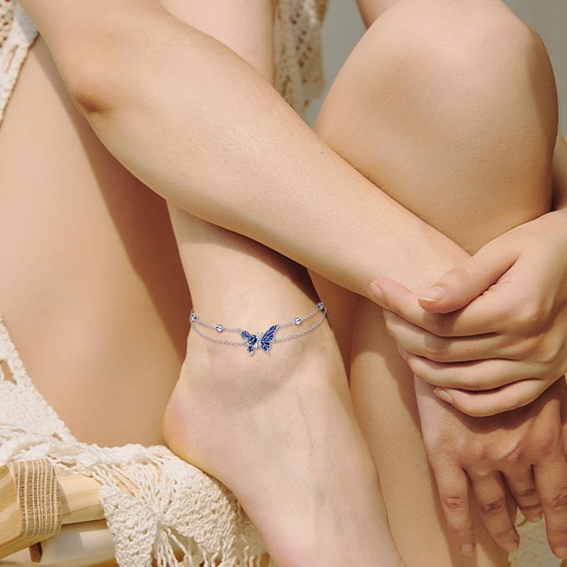 Add a touch of whimsical elegance to your style with these butterfly anklets. Made of sterling silver, these dainty ankle bracelets feature a layered chain design that is perfect for the beach. A wonderful gift for women.
