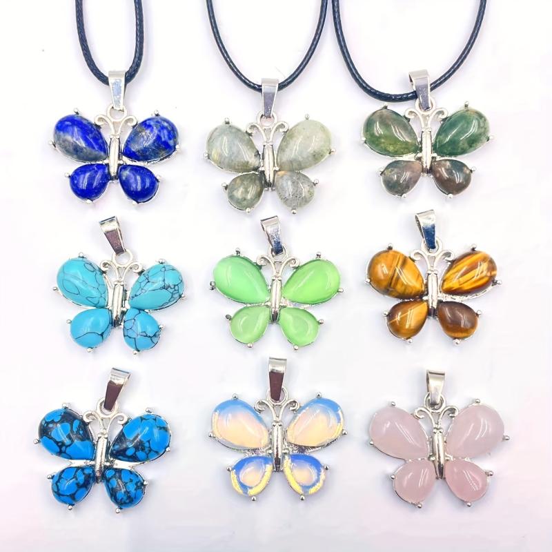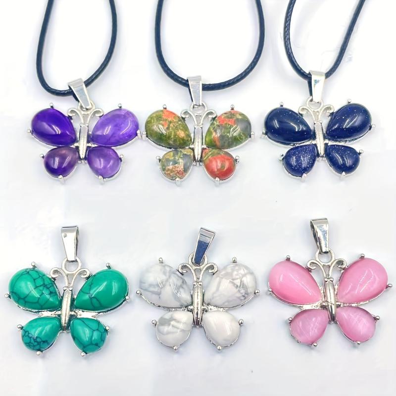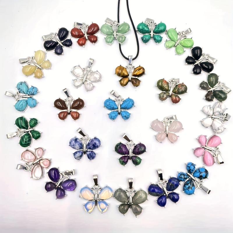 Create your own stunning butterfly pendant necklace with this natural stone and synthetic opal turquoise jewelry making kit.