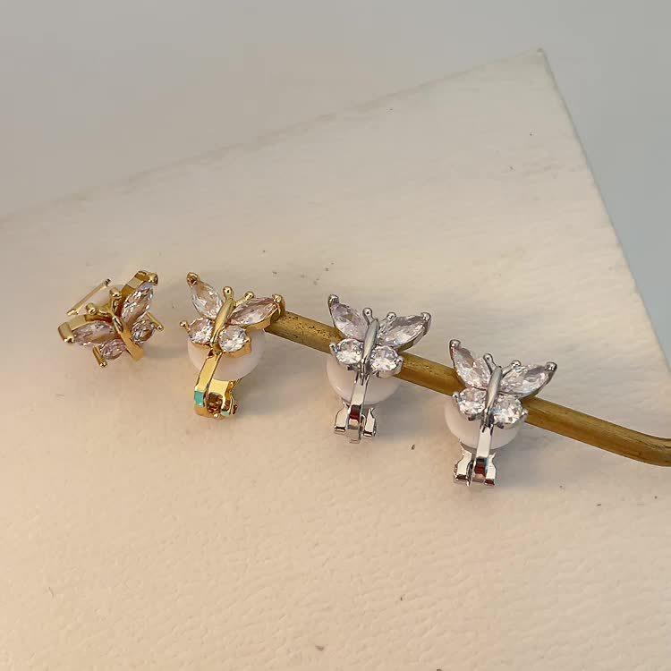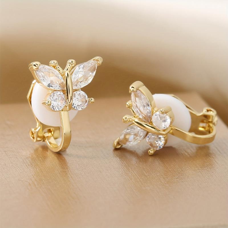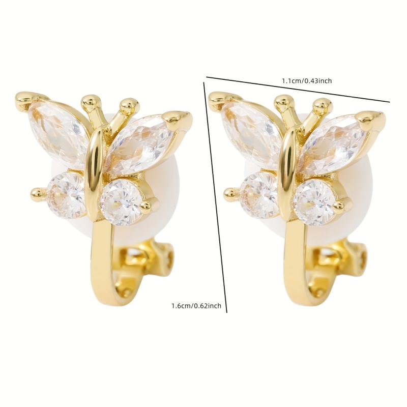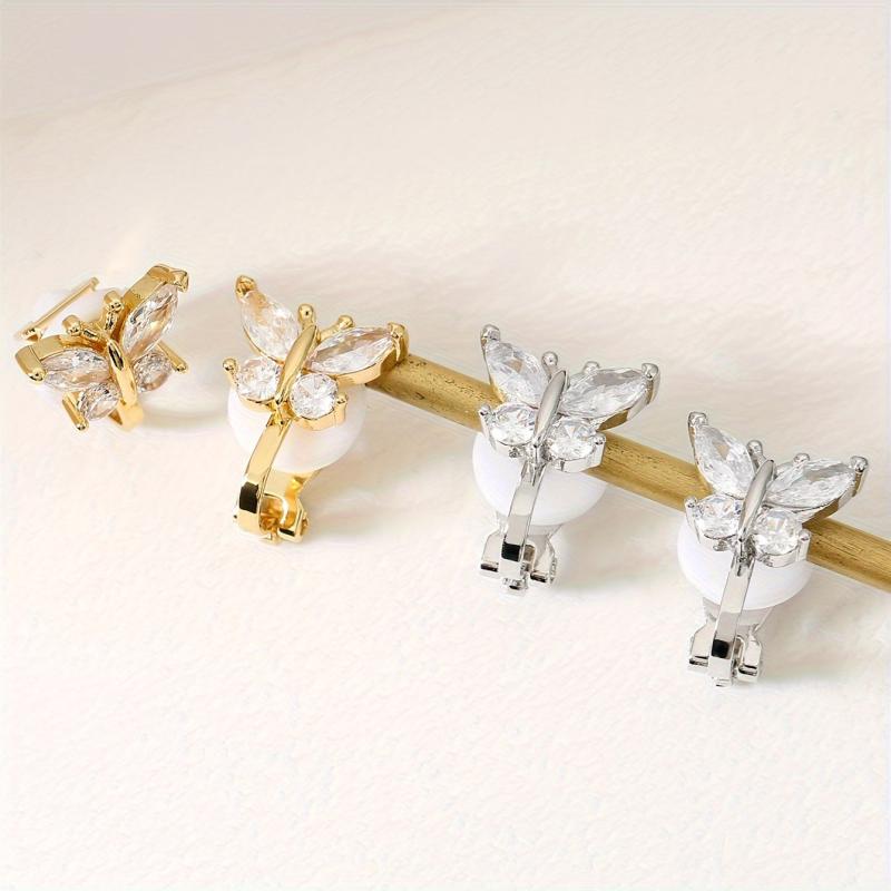Add a touch of elegance to your look with these stylish butterfly shaped clip on earrings, suitable for men and women. Perfect for holiday parties and gatherings.