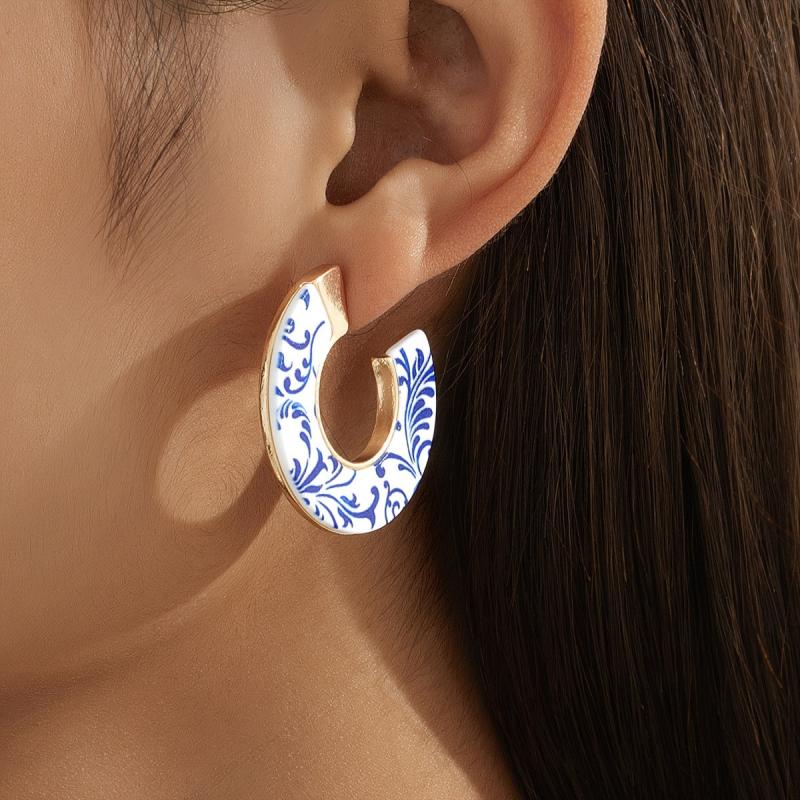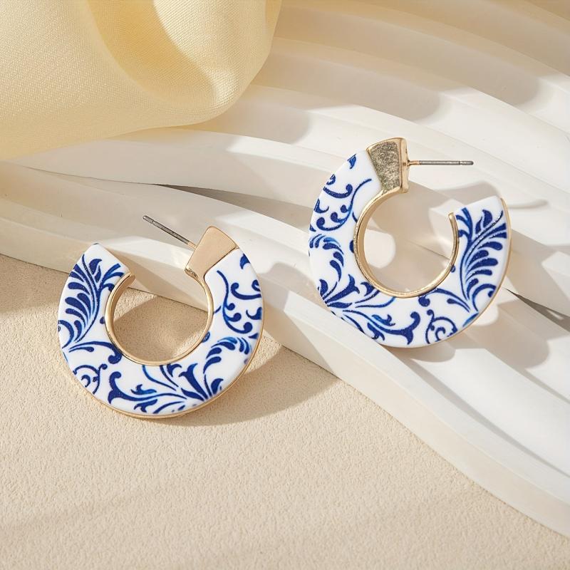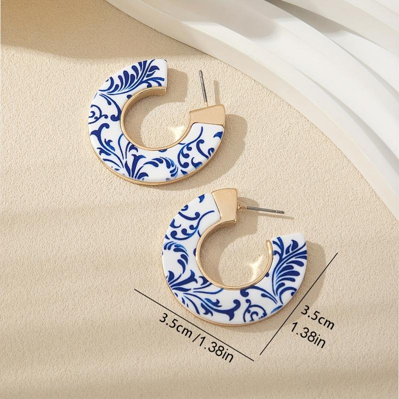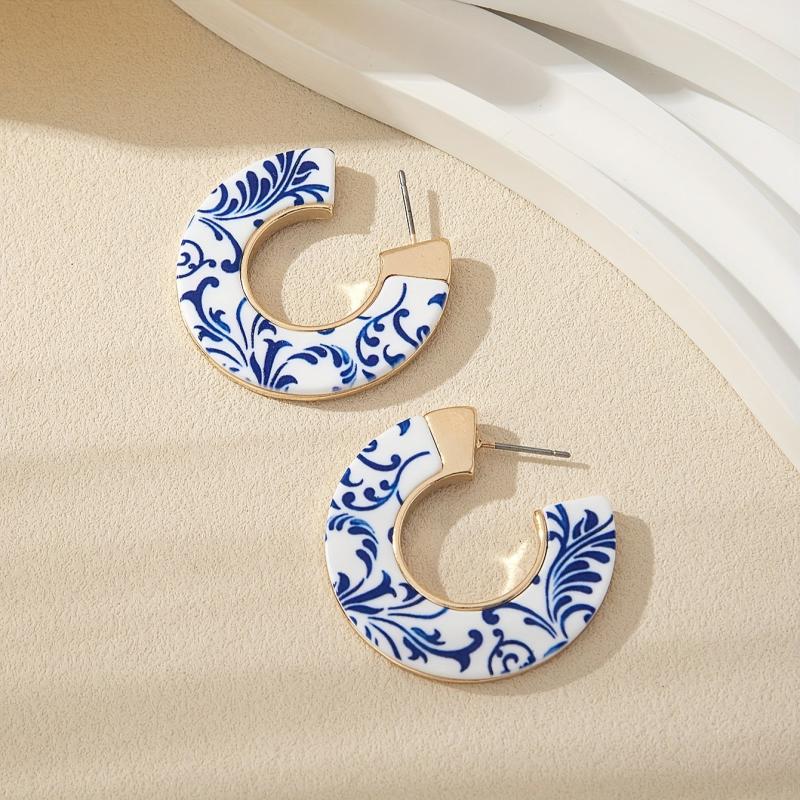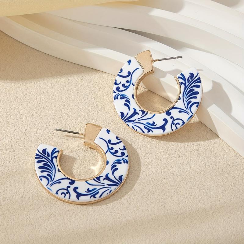 Elevate your style with these modern earrings featuring a chic C-shape design made of acrylic and porcelain.
