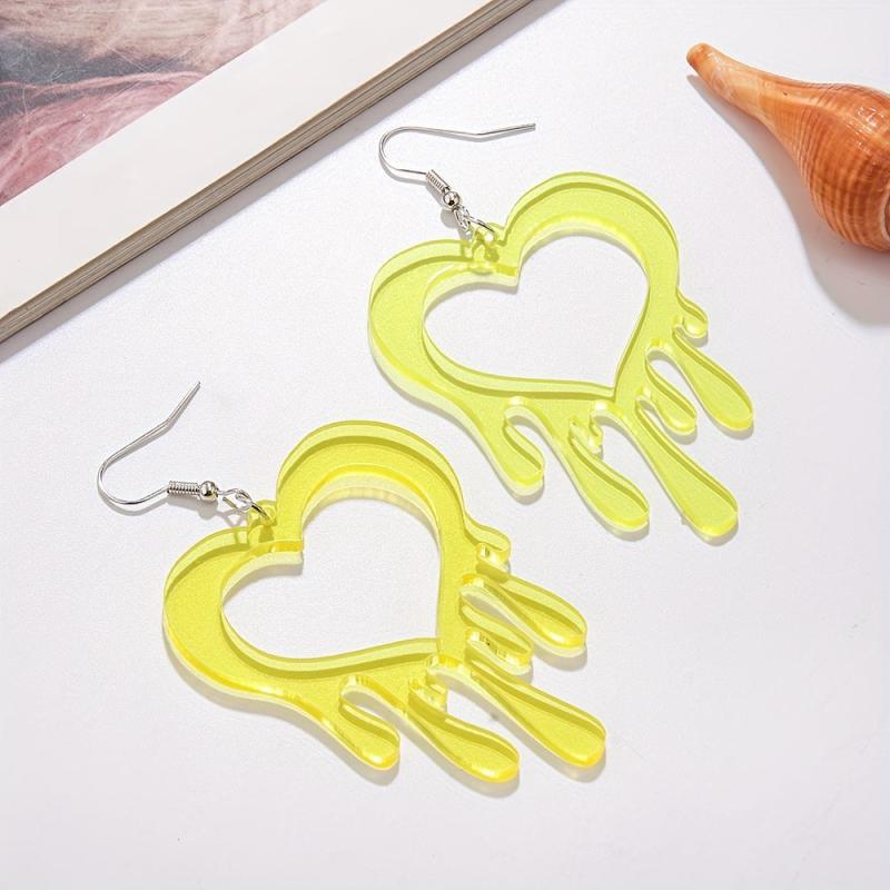 These adorable candy heart drop earrings are a fun and trendy addition to your jewelry collection. Made of acrylic, these dangle earrings are perfect for adding a pop of color to your outfit. They make a great gift for any occasion.