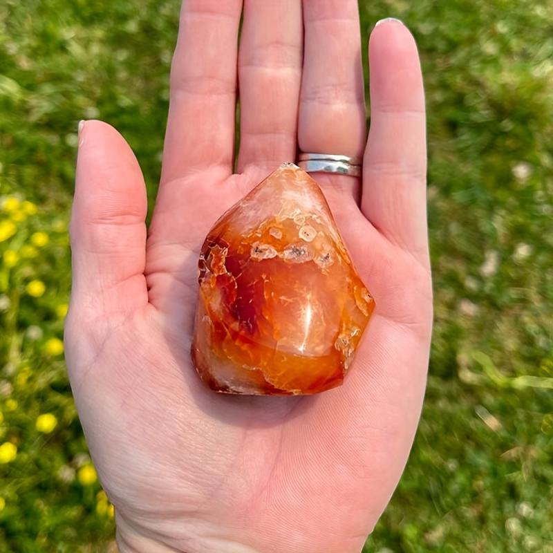 Add a touch of boho style to your home decor with this natural Carnelian crystal tower. Perfect as a unique holiday gift or a stunning addition to any crystal collection.