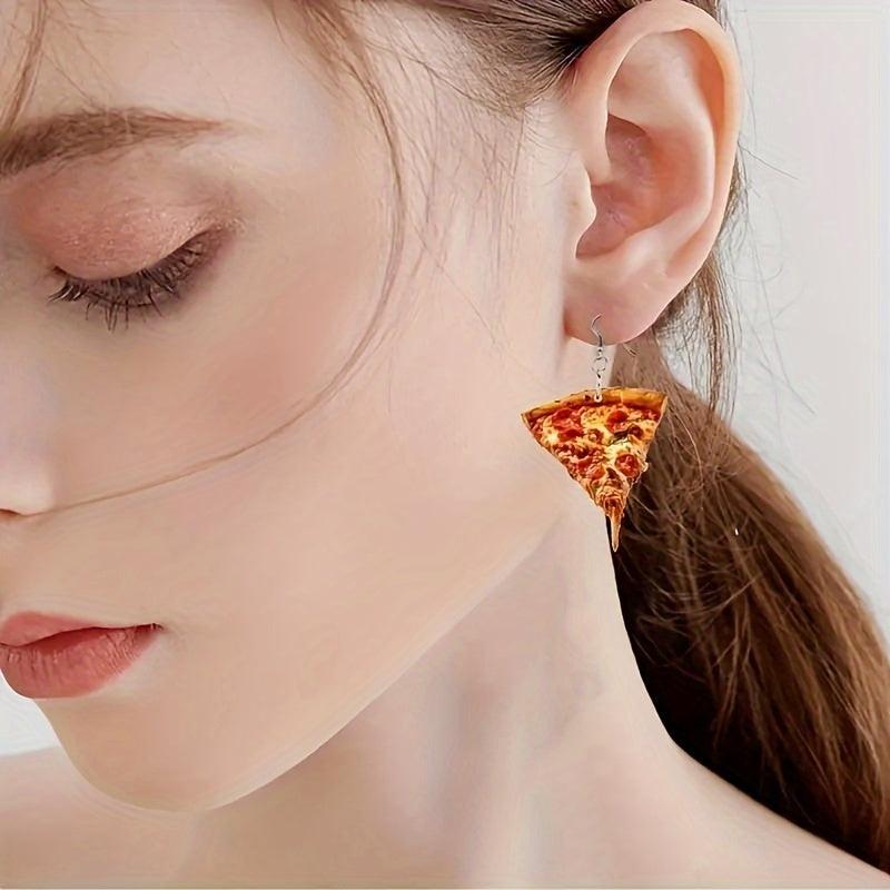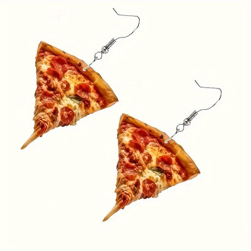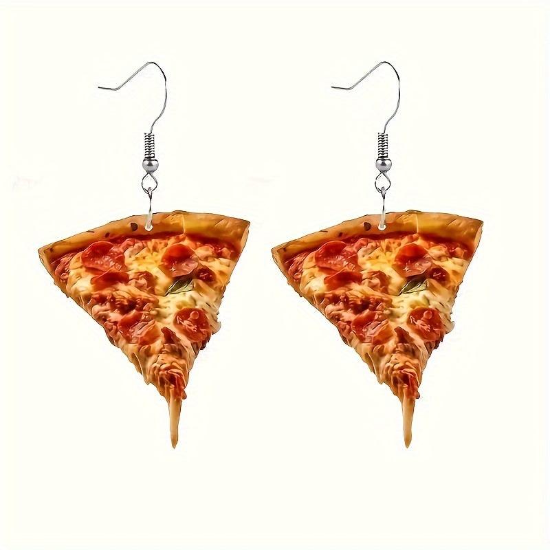 Add a fun touch to your outfit with these pizza-themed acrylic earrings featuring colorful cartoon style artwork.