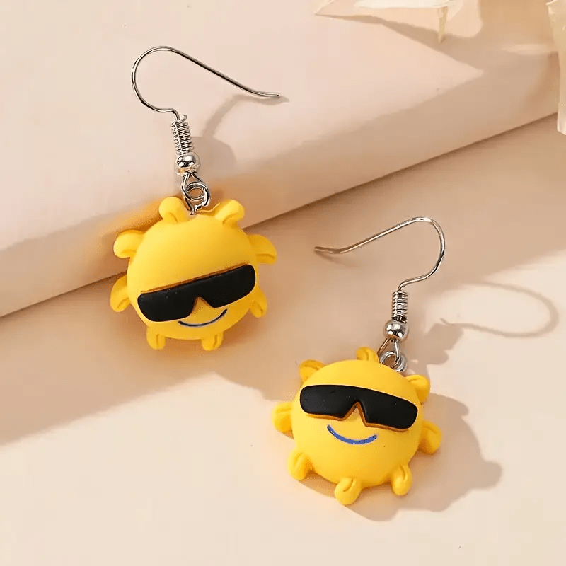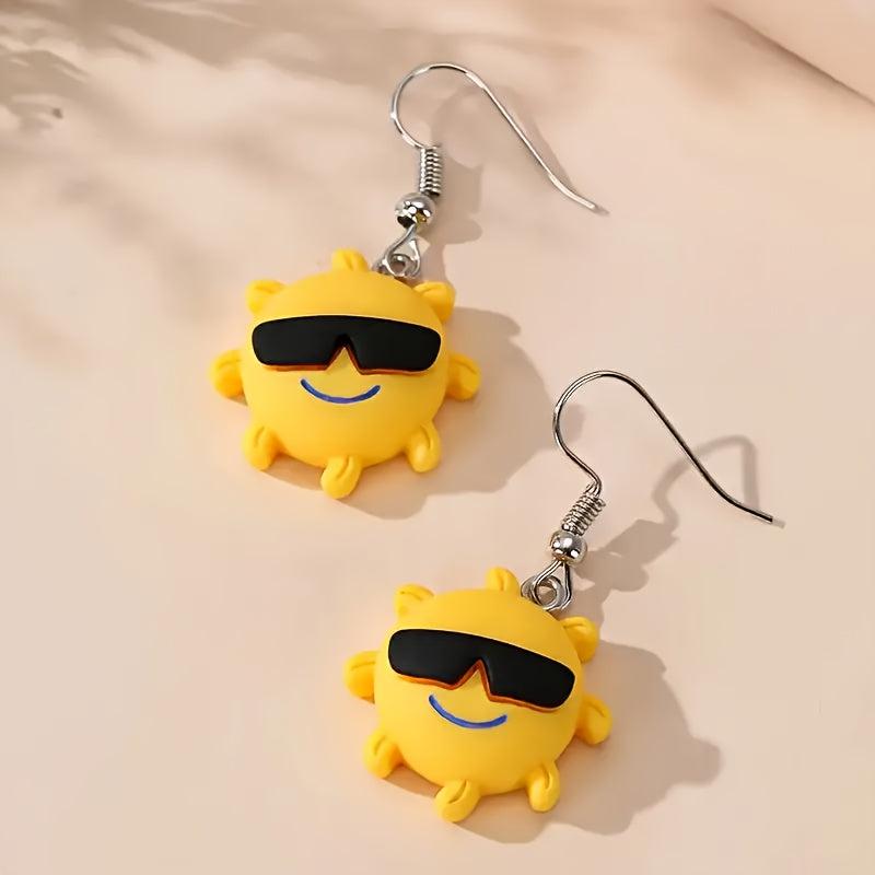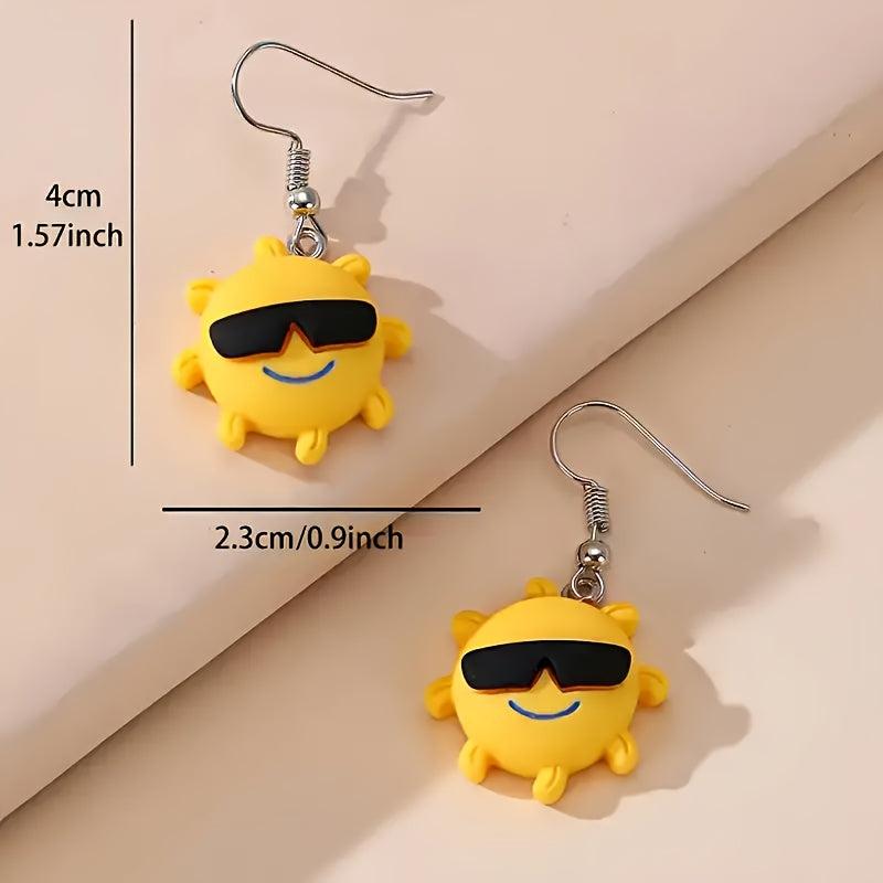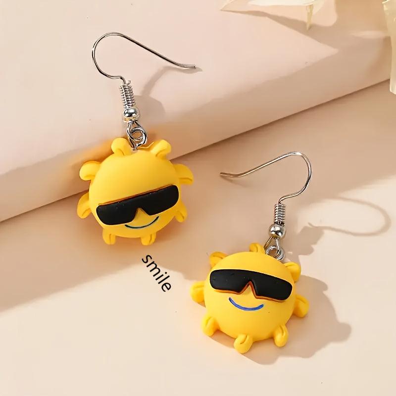 These cute earrings feature a cartoon sun design that adds a fun touch to any outfit. Made of resin with copper ear needles, they are perfect for daily wear.